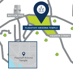 The temple will be built on a 10.43-acre site at the southwest corner of Butler Ave. and S. Fourth St., Flagstaff, Arizona. Plans call for an 18,850-square-foot, single-story temple and an accompanying ancillary building.