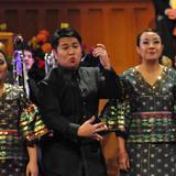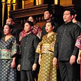 Philippine Madrigal Singeres (seated center) perform with the Mormon Tabernacle Choir on 17 April 2011