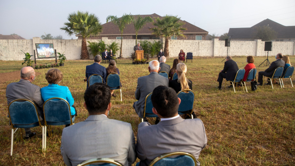 A regional Church leader Saturday in McAllen, Texas — a city less than 10 miles from the U.S.-Mexico border and the location of the latest temple to begin construction — told a gathering of fewer than 30 Latter-day Saints and invited guests on a 70-degree morning that the temple coming to their city is eternally significant. This temple, he said, is an important indicator of their collective faith and a valuable reminder of the most important things in life.