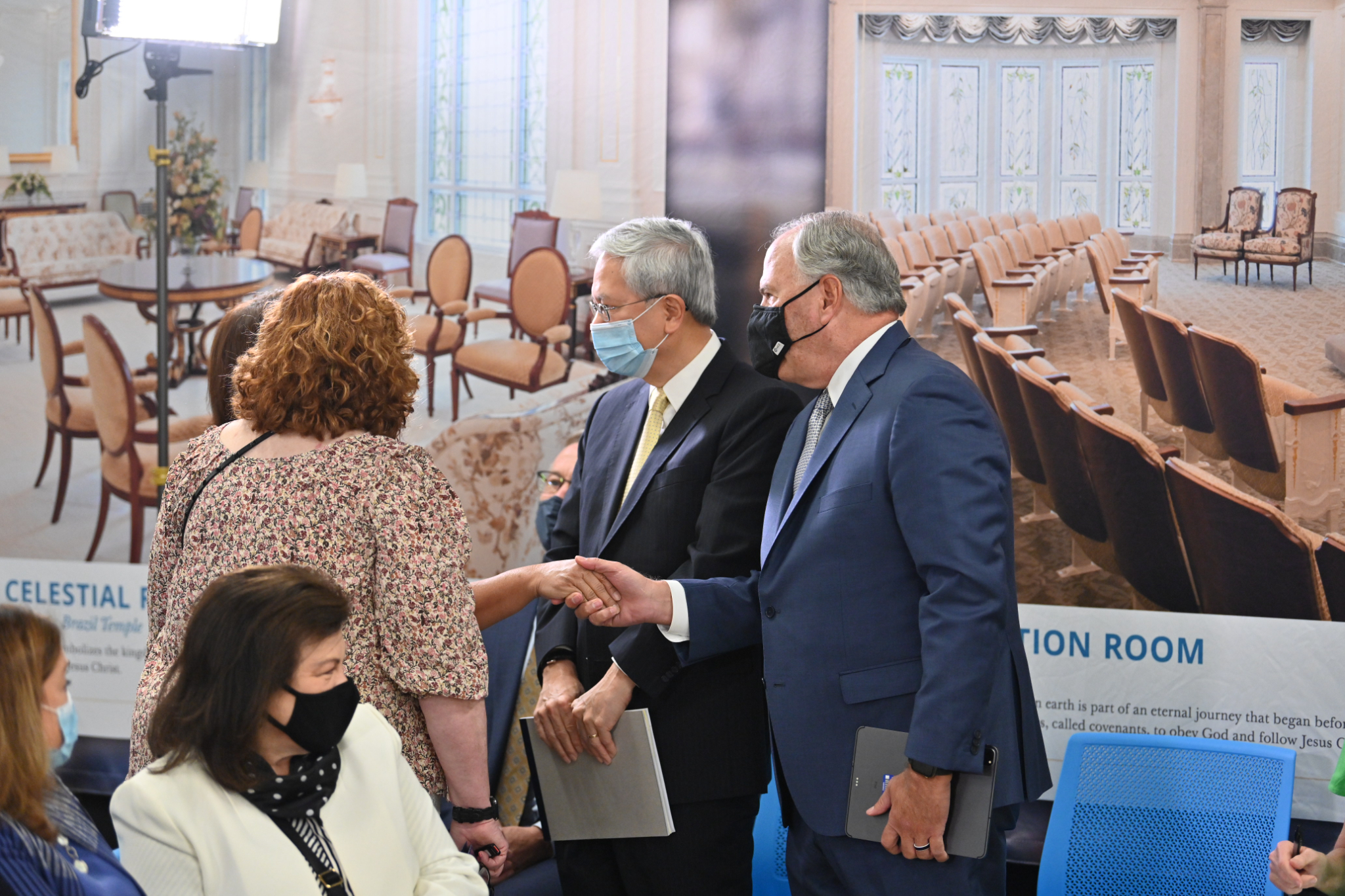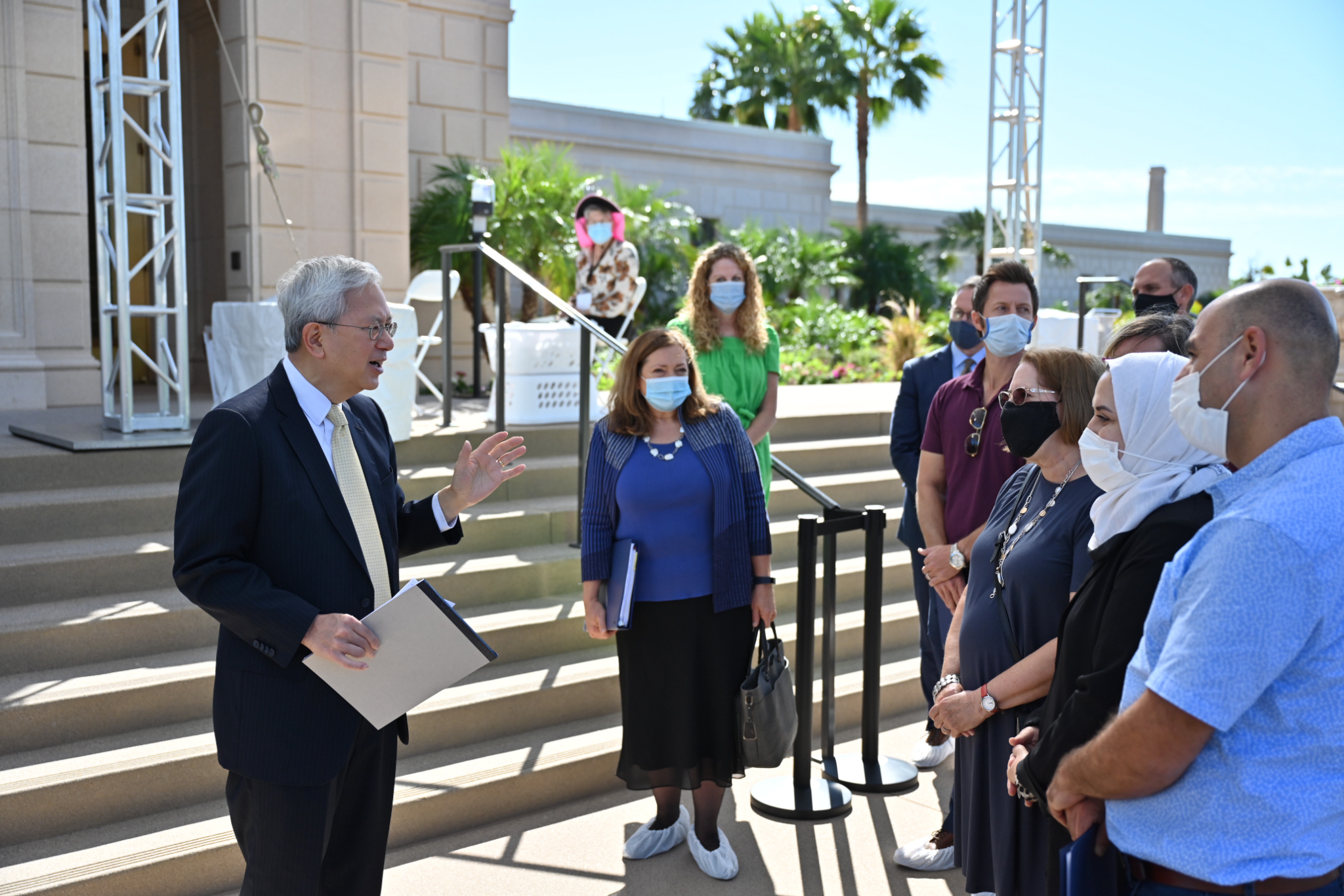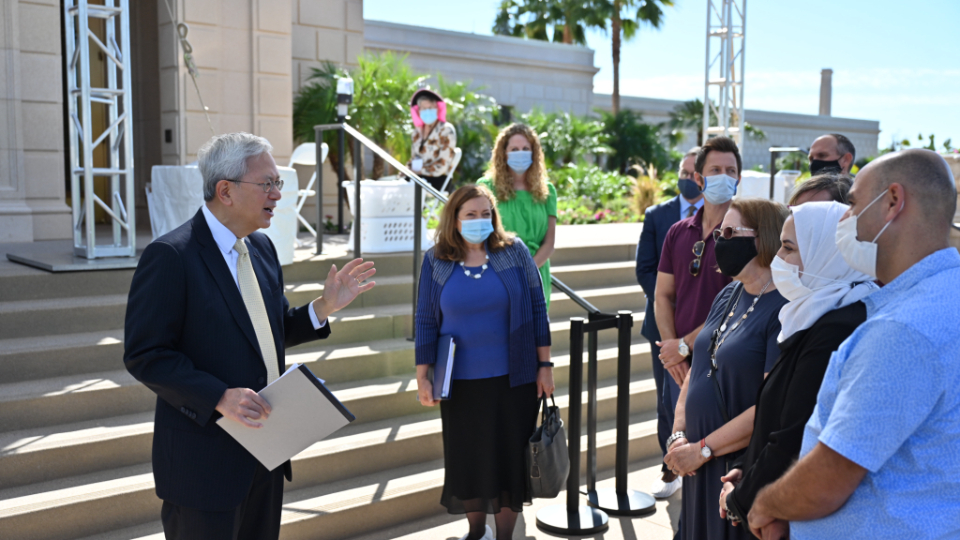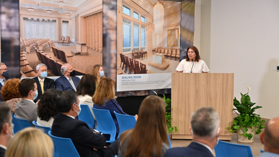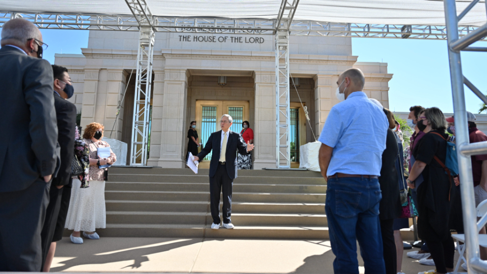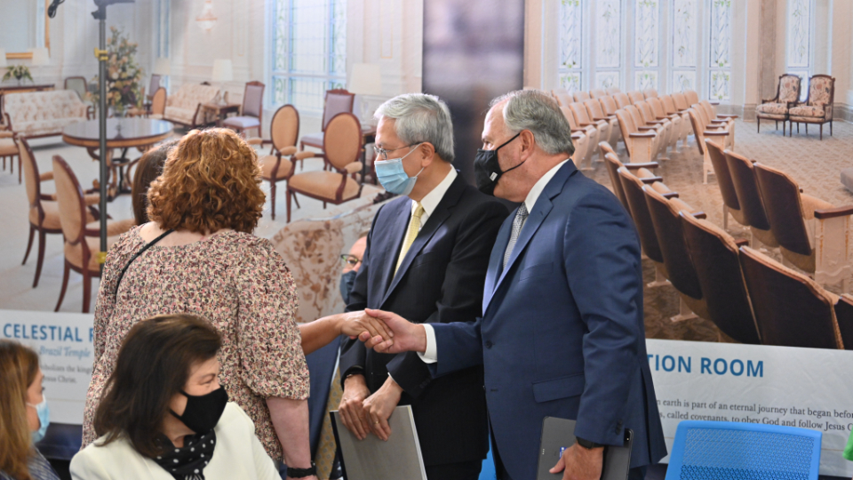 Senior Church leaders met with the media, including Hispanic journalists and social media influencers, to discuss the renovation and take them on a tour of the temple on Monday, October 12, 2021.