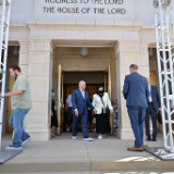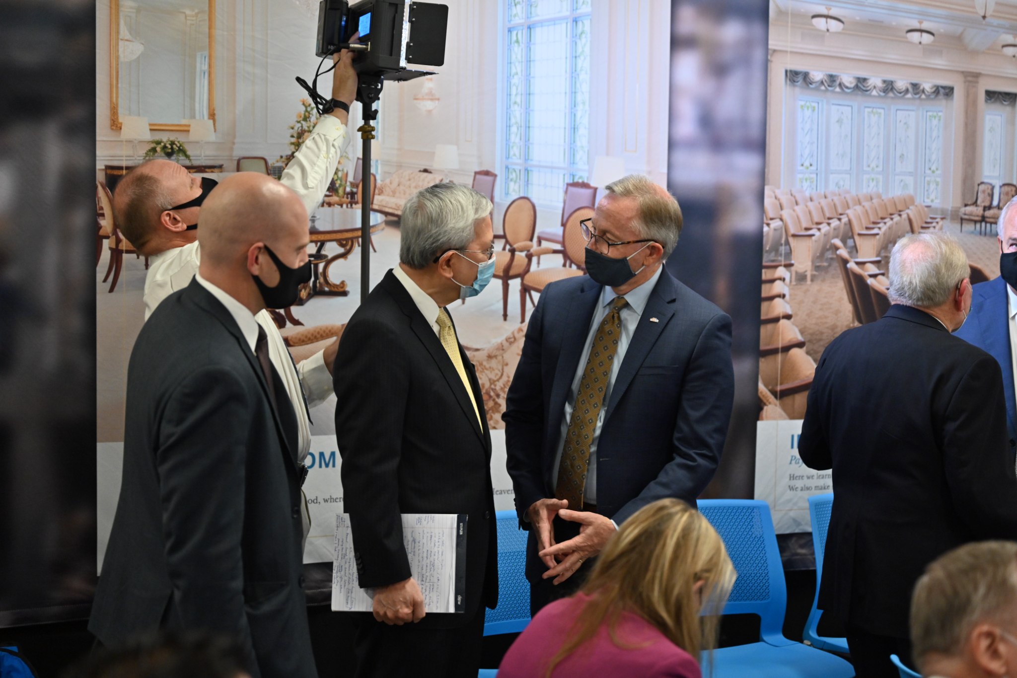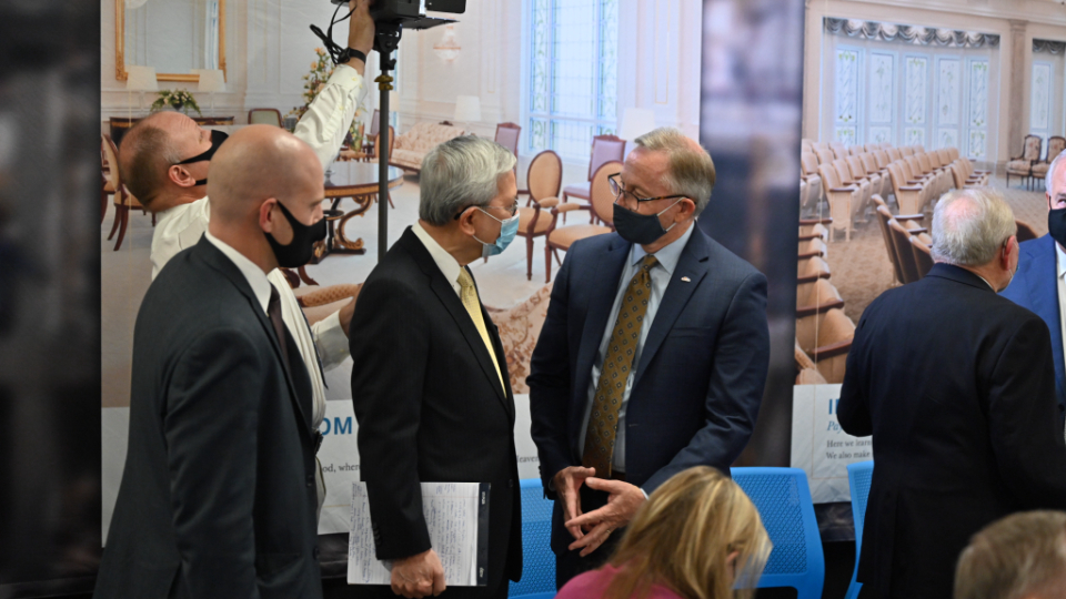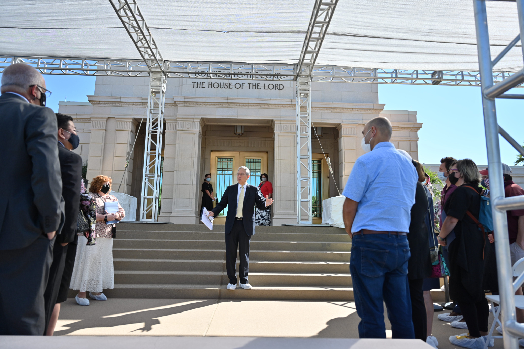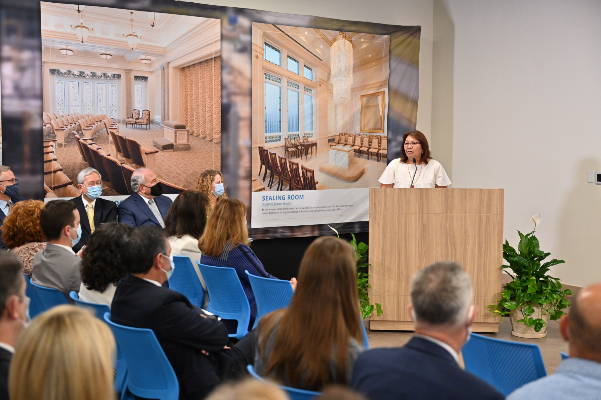 Senior Church leaders met with the media, including Hispanic journalists and social media influencers, to discuss the renovation and take them on a tour of the temple on Monday, October 12, 2021.