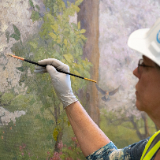 “All of the sketches were designed from the original photographs, and even the concept and intent of the original artist was maintained,” Christensen said. “I’ve thought a lot about each of those painters and studied their strokes and studied the remaining pieces and tried to understand what they were portraying, what their goal was. … I became very connected to feeling akin to them. I felt a harmony and a resonance with their intent in what I was portraying. I began to feel like I was just helping them refine and refresh something that they had begun to create.”