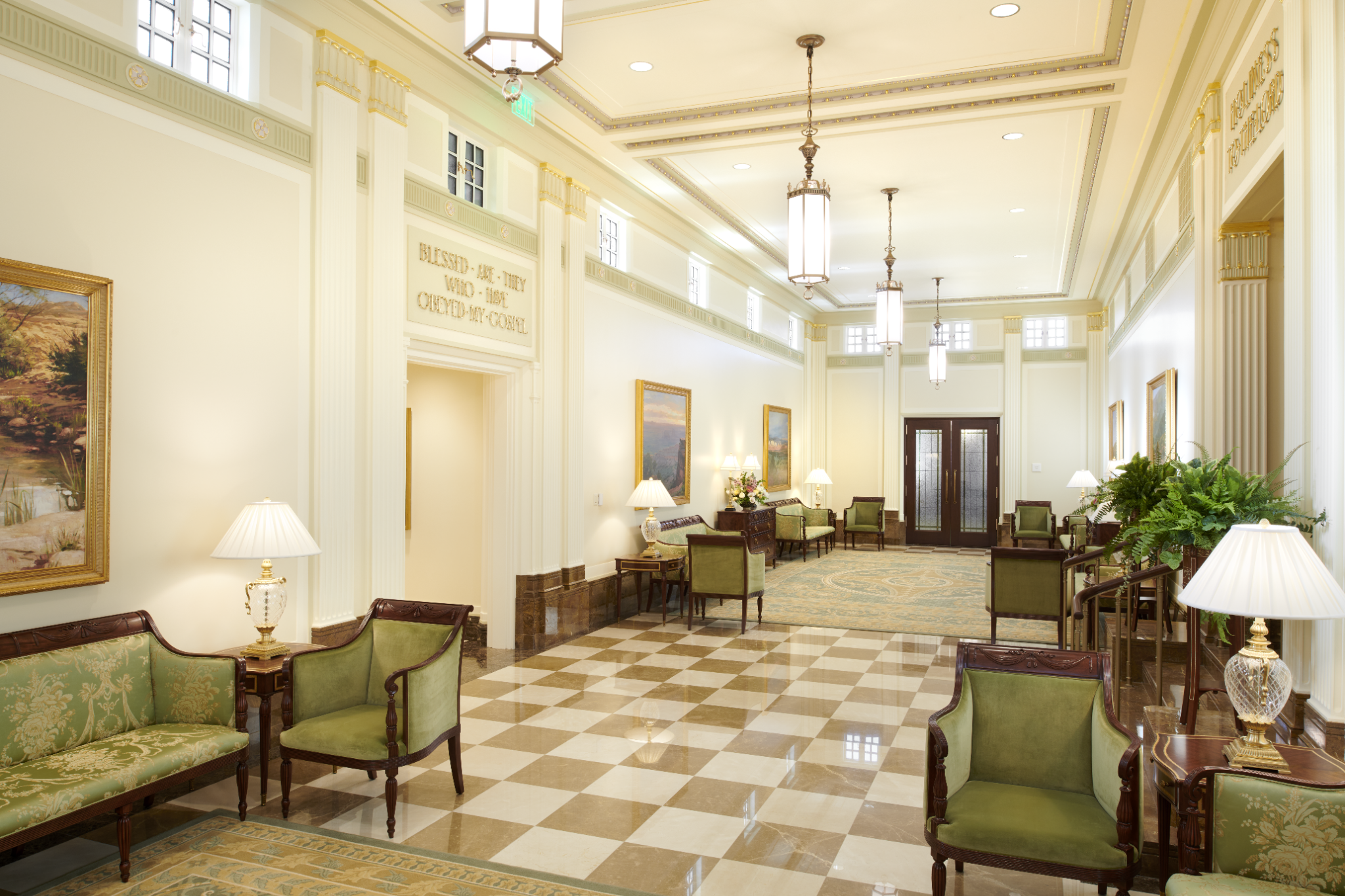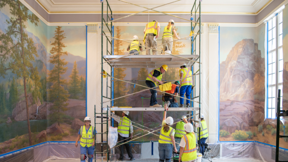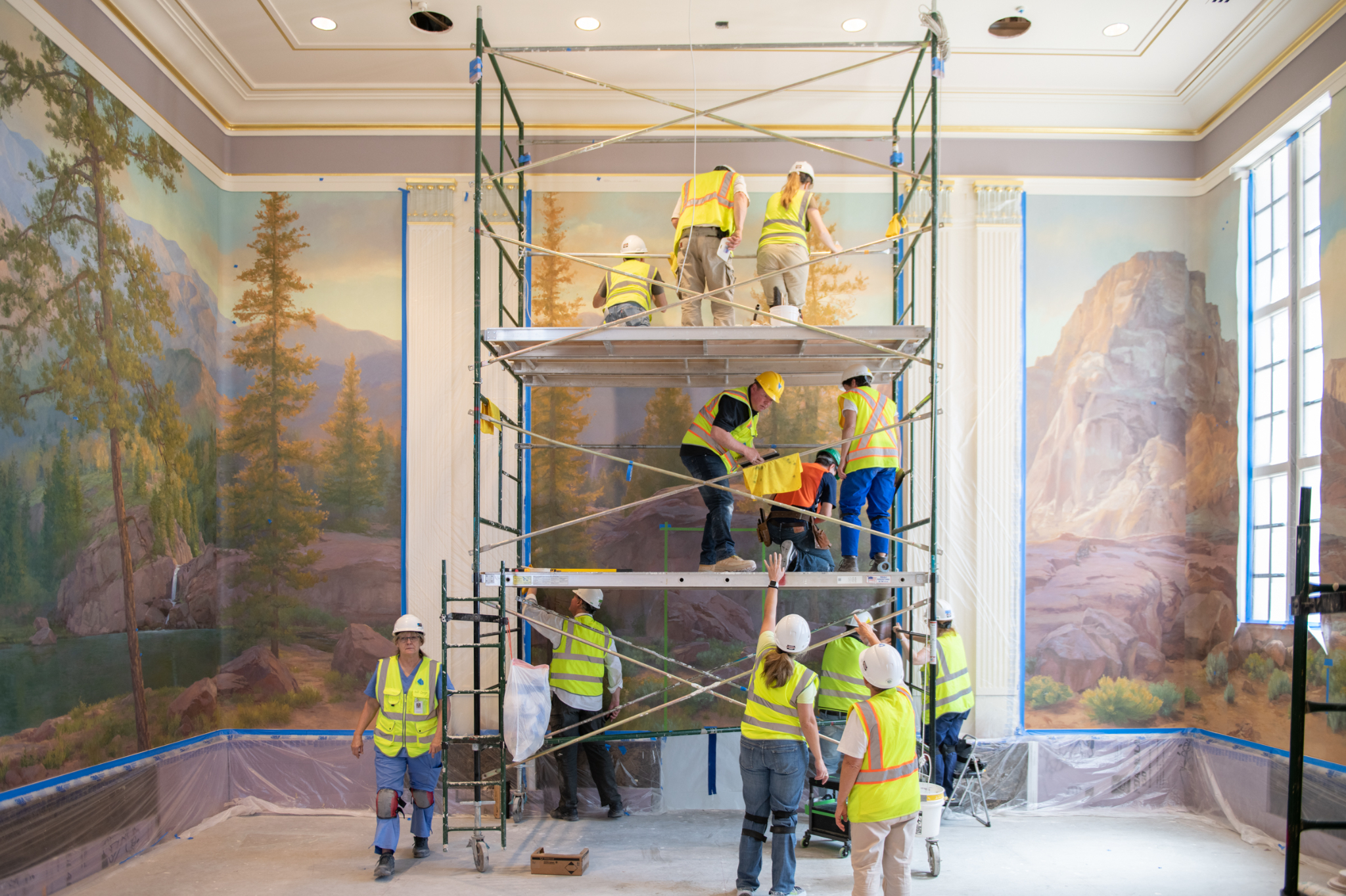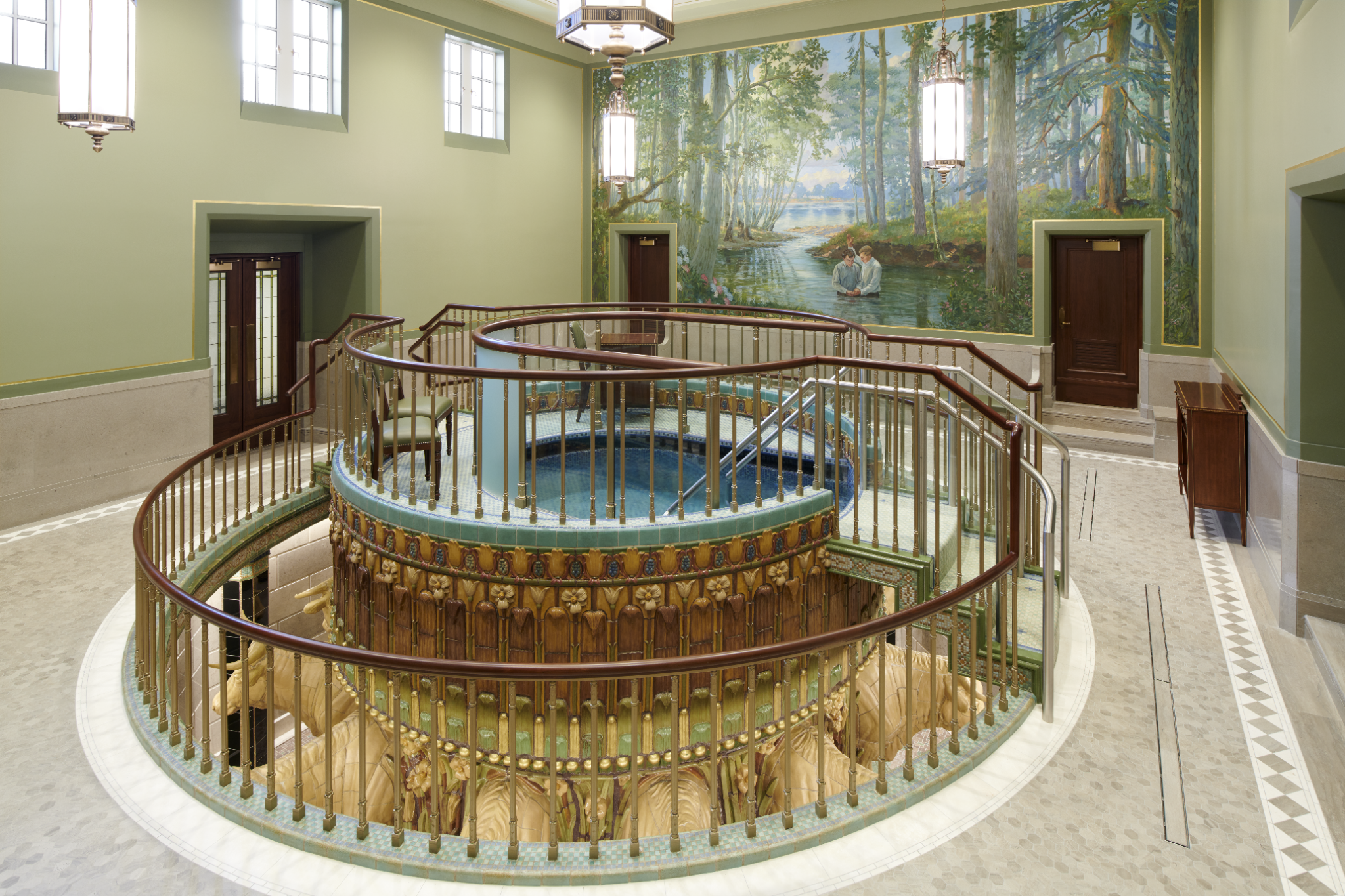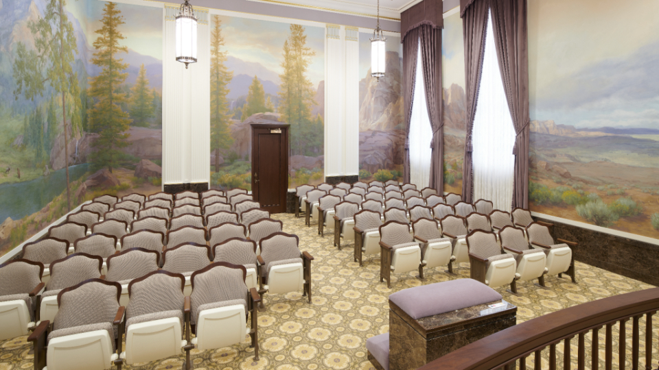 The Church commissioned Linda Curley Christensen and a team of artists to create new murals to encompass the four walls of each room, similar to how they appeared in 1927.