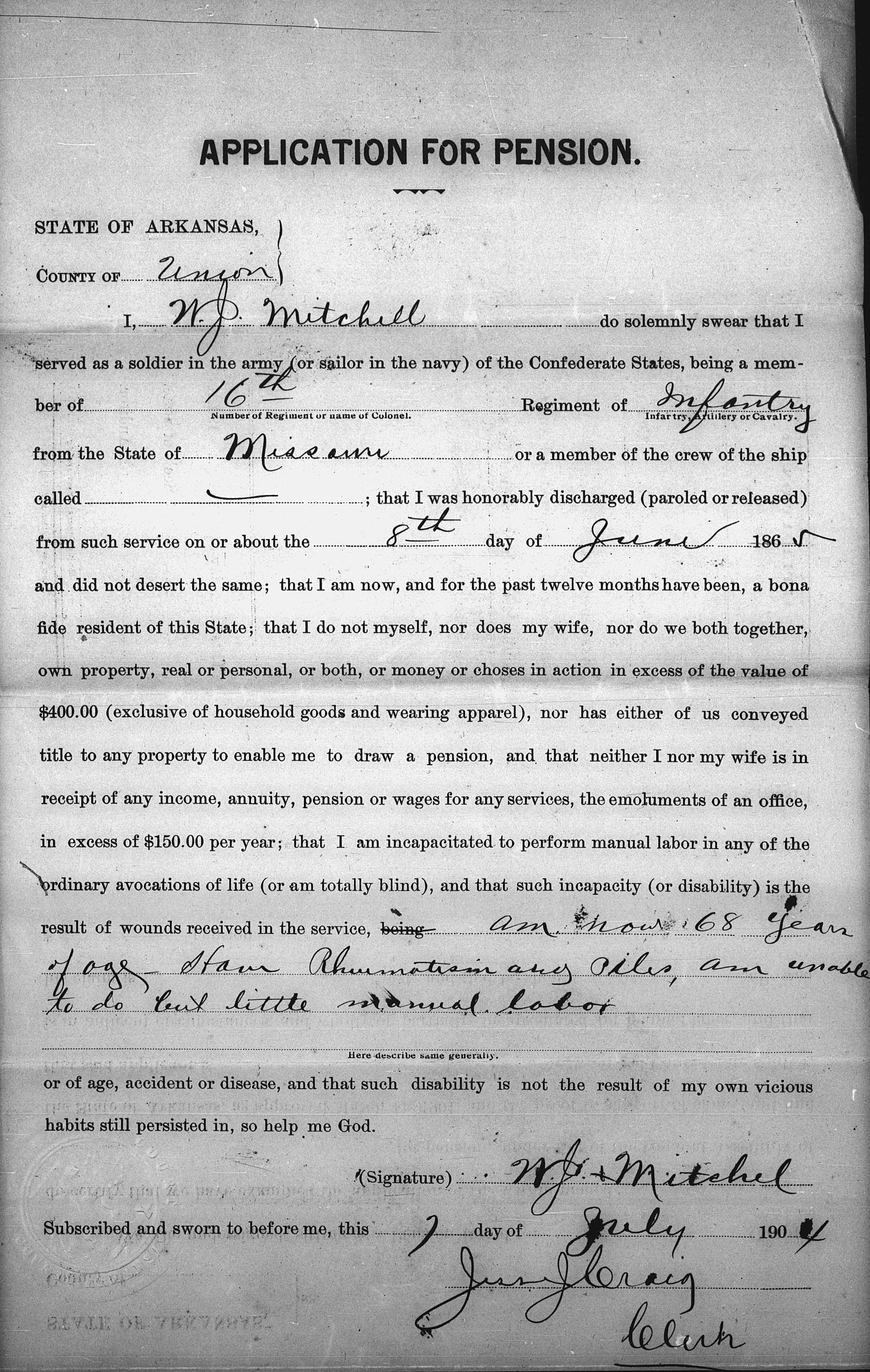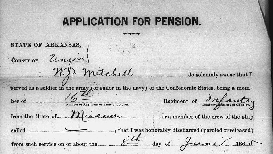 - Missouri Confederate Pension Applications and Soldiers’ Home Admission Applications