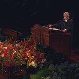 Quoting an unnamed poet, President Monson said: “‘Here and there, and now and then, God makes a giant among men.’ President Hinckley was such a giant – a giant of knowledge, of faith, of testimony, of compassion, of vision.”