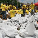 Over 130 missionaries from The Church of Jesus Christ of Latter-day Saints are saying thank-you to the people of Quincy, Illinois, by filling sandbags to protect the city that once protected Mormon pioneers.