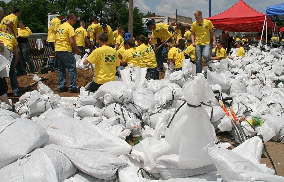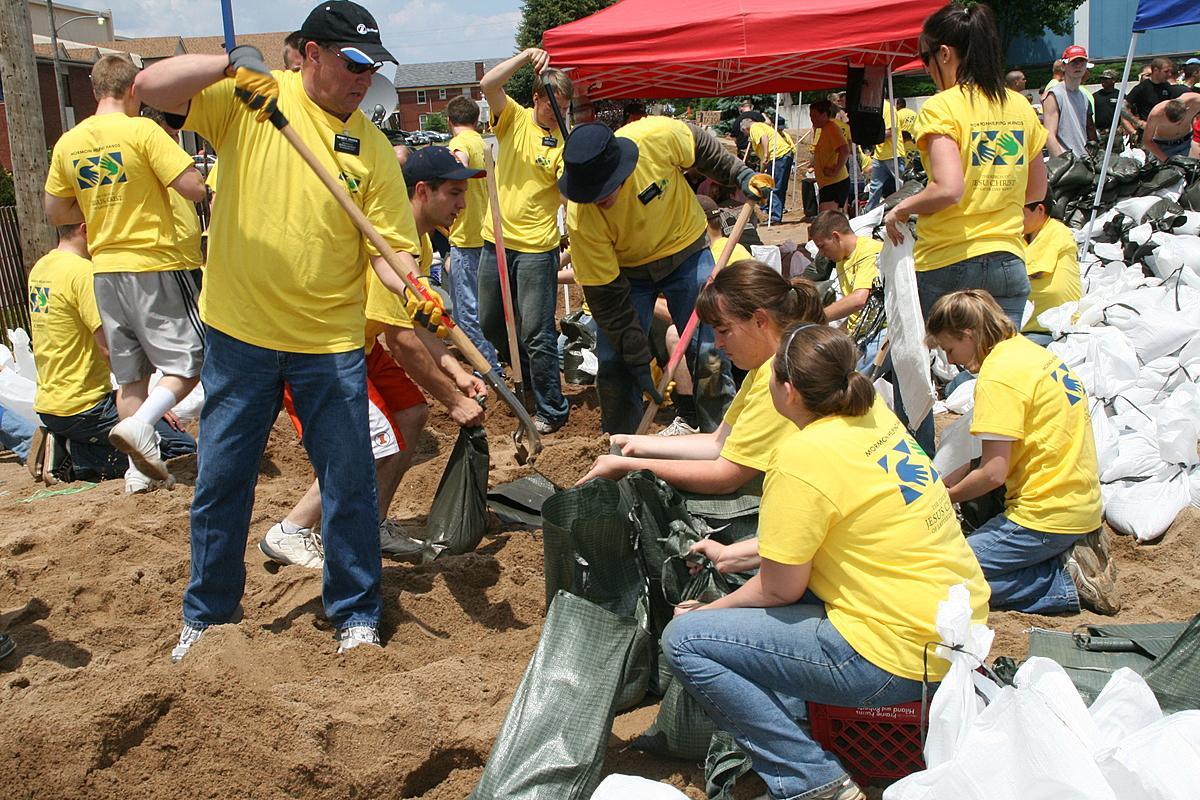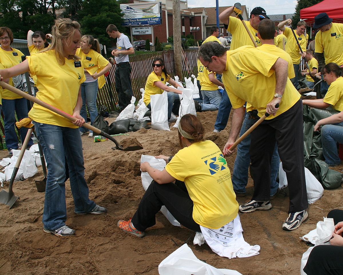 Wednesday morning, missionaries from the Peoria, Illinois, and St. Louis, Missouri, missions arrived in Quincy to help prevent potential damage from a key levee that broke Tuesday night between Quincy and Warsaw, Illinois. Heavy rain in the Midwest has left entire towns inundated and thousands of people homeless in the last week.