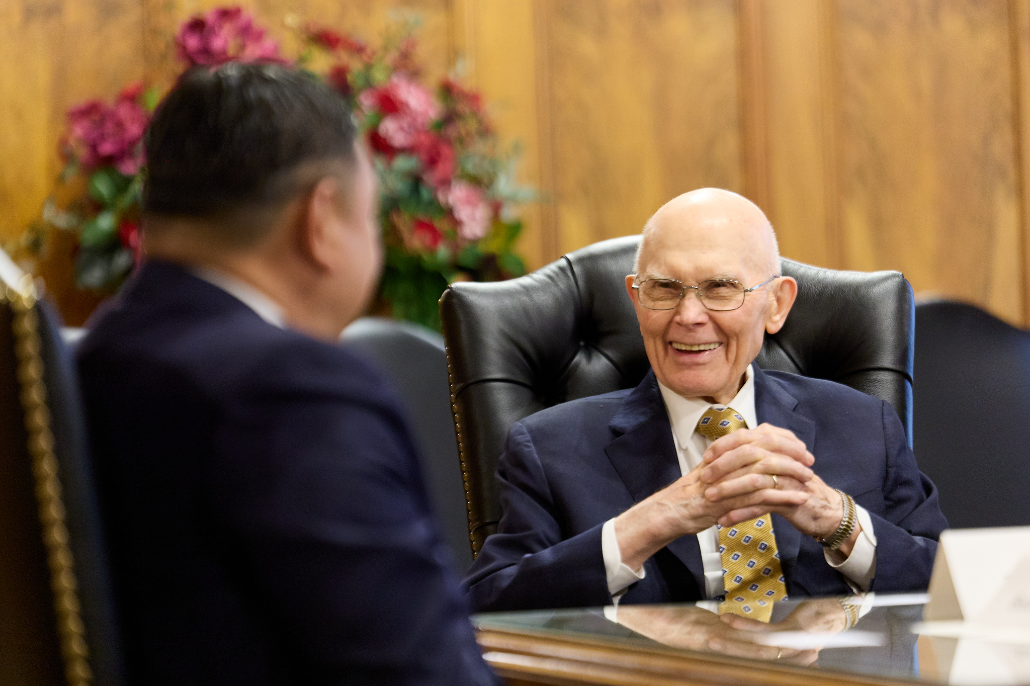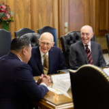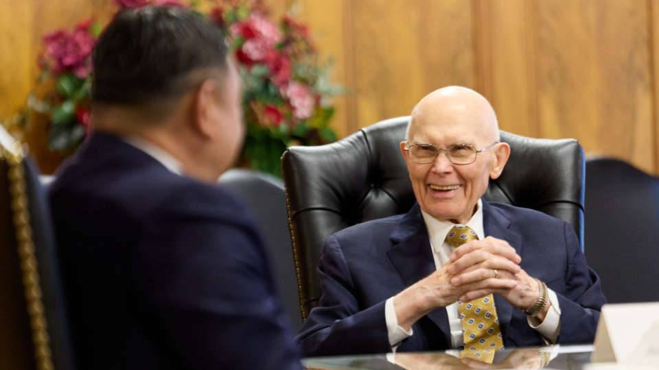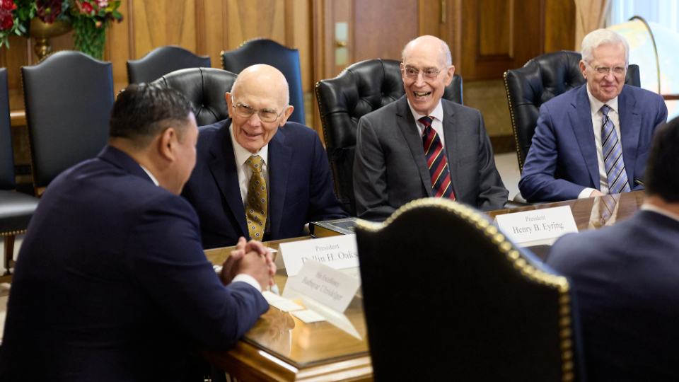 He was welcomed by President Dallin H. Oaks, President Henry B. Eyring and President D. Todd Christofferson at the Church Administration Building in Salt Lake City, Utah.