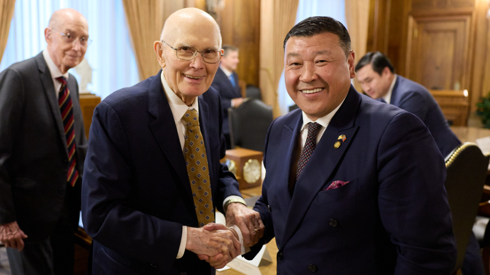 The Ambassador of Mongolia to the United States, His Excellency Batbayar Ulziidelger, met with the First Presidency of The Church of Jesus Christ of Latter-day Saints on Wednesday, October 22, 2025.
