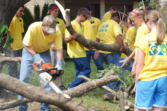 As Houstonians begin to pick up the pieces of their lives following the devastation caused by Hurricane Ike, members of The Church of Jesus Christ of Latter-day Saints have mobilized into volunteer work crews to provide much needed cleanup of debris for their neighbors in southeast Texas.