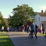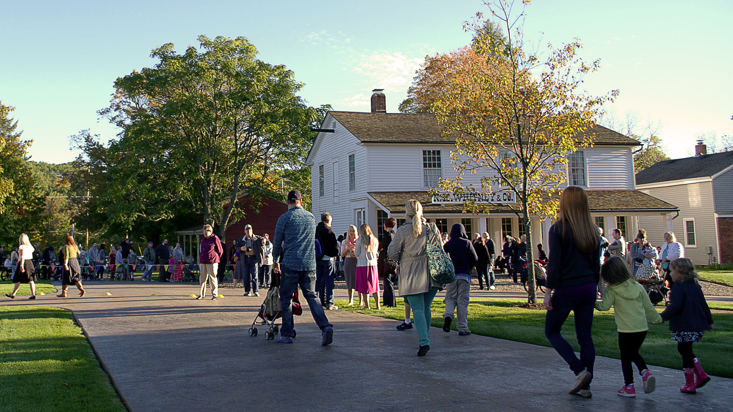 Visitors walk among the rebuilt and restored buildings in historic Kirtland, opened 10 years ago.