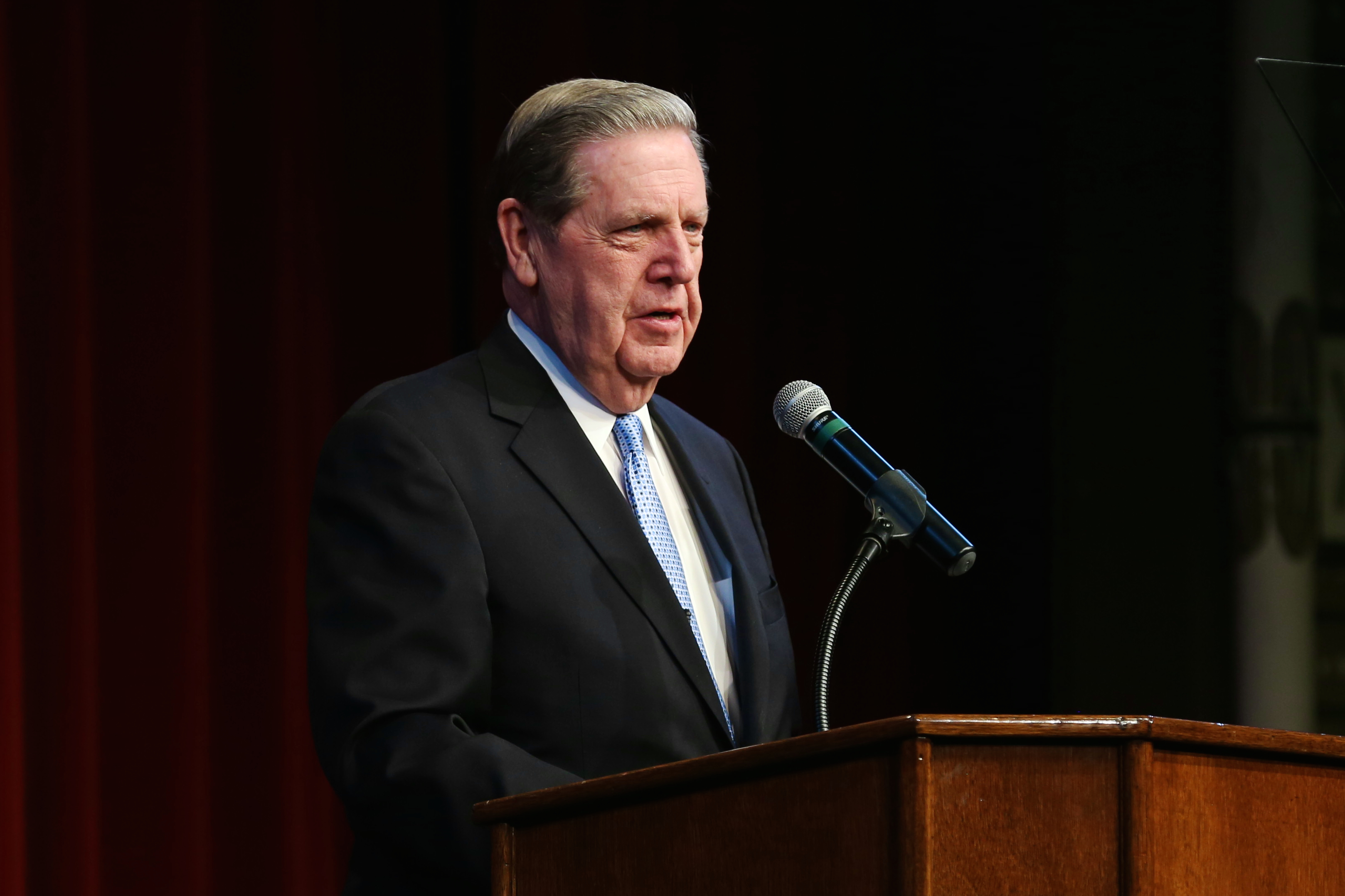 Elder Holland focused his remarks on the “contemporary issues” of faith, family and religious freedom — “big issues that are intertwined, interlinked and interlocked so tightly that when one of them is struck, the other two are damaged, that when one of them is cut, the other two will bleed,” he told a campus audience. “These issues deserve our interfaith attention and our interfaith protection, because there is always strength in numbers.”