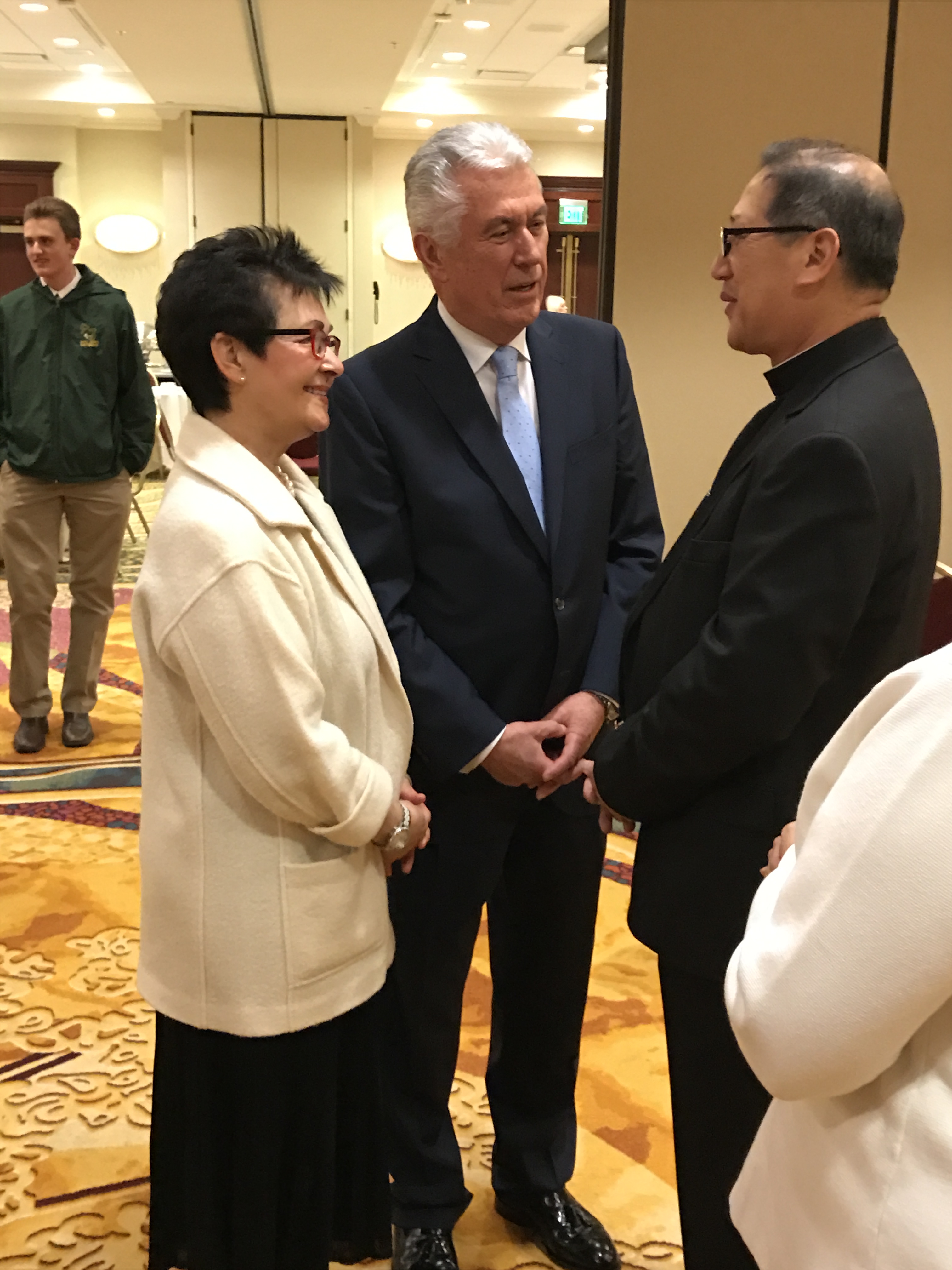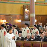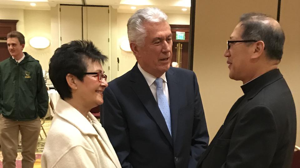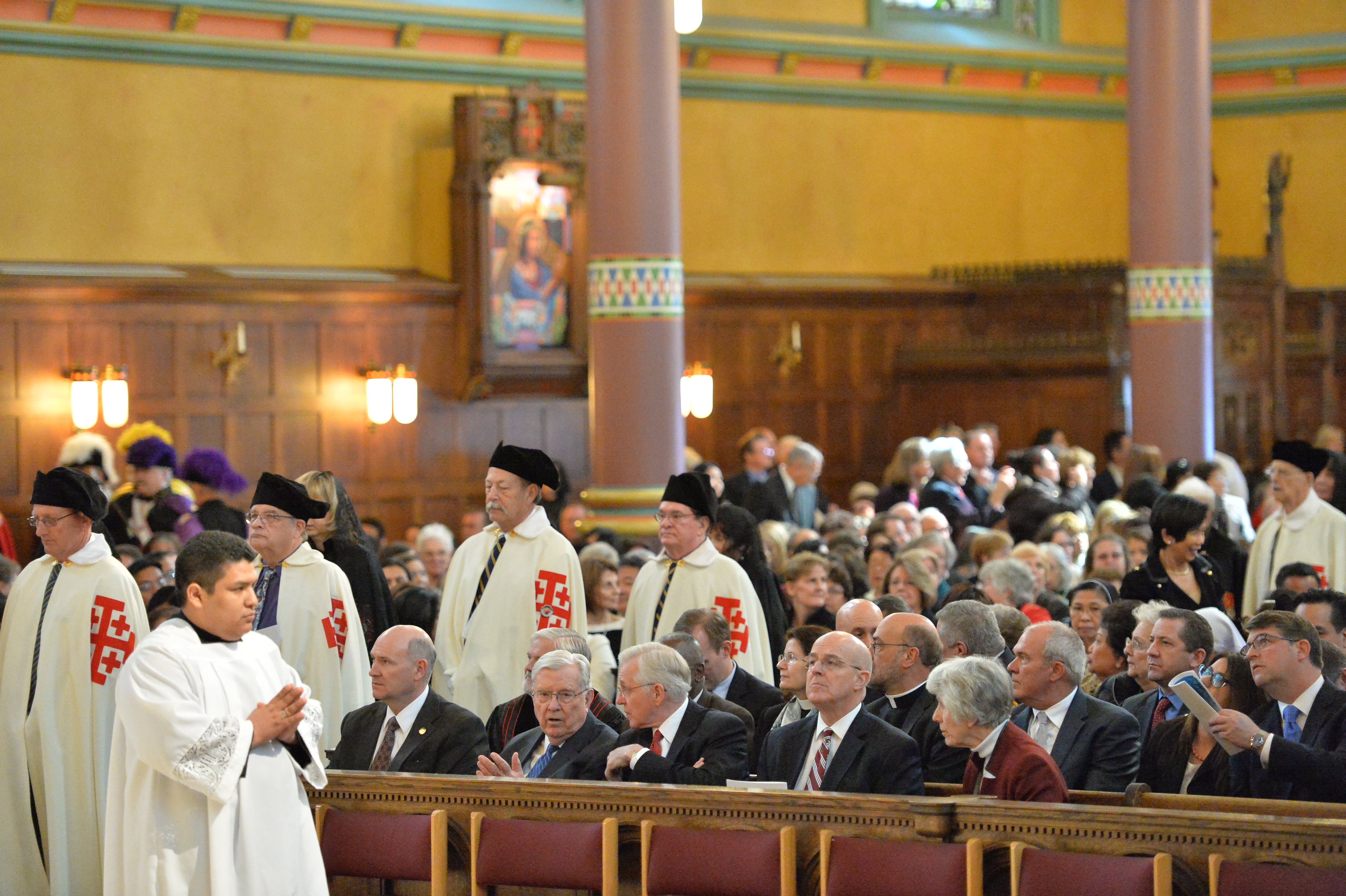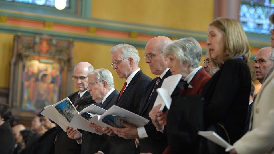 Elder M. Russell Ballard and Elder D. Todd Christofferson of the Quorum of the Twelve Apostles and Elder L. Whitney Clayton of the Presidency of the Seventy attended the installation ceremony for Bishop Solis on Tuesday afternoon, March 7, 2017, at the Cathedral of the Madeleine.