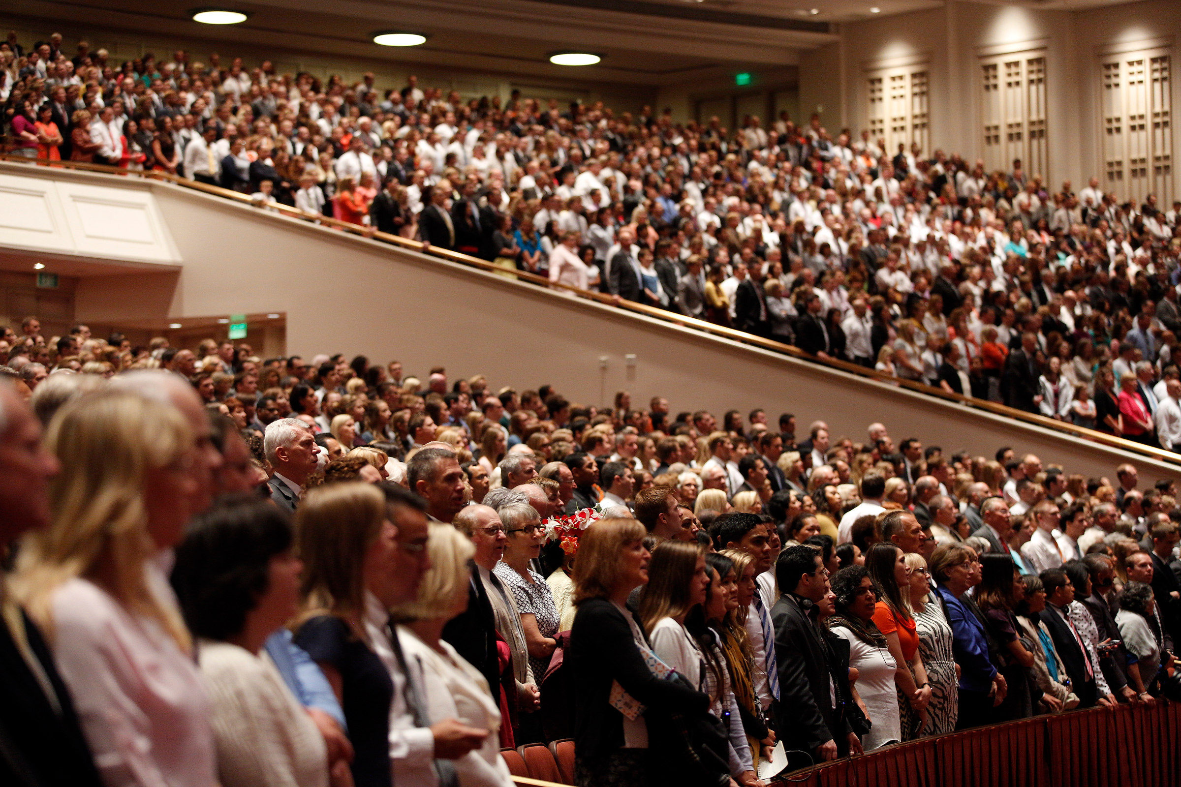 The Conference Center seats 21,000 people for each session. Millions more around the world will view or listen in more than 80 languages at over 7,400 Church buildings in over 100 countries via television, radio, satellite and Internet broadcasts. The meetings are provided in a total of 94 languages. This is the first time general conference has been broadcast to the entire continent of Africa.