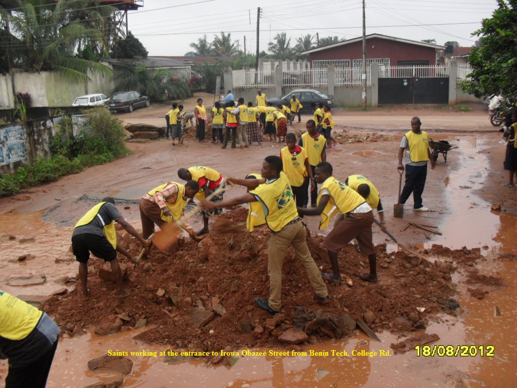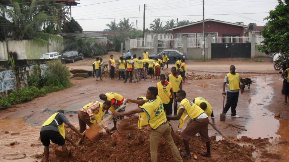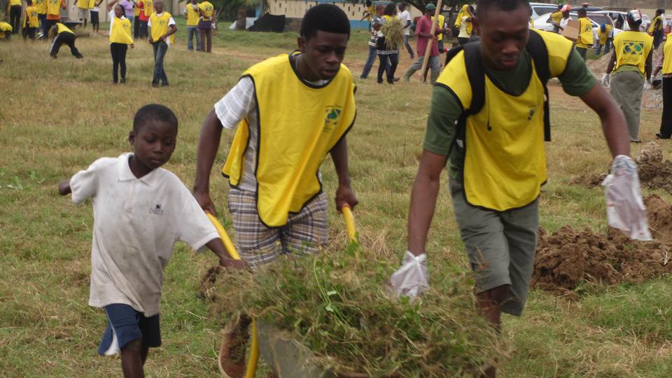 The annual day of service in Africa involved members of The Church of Jesus Christ of Latter-day Saints (Mormon) and their neighbors who spent the day cleaning inside and outside of hospitals, police stations and radio stations, performing erosion control, clearing a path for people to get water, trimming flowers and removing cobwebs.