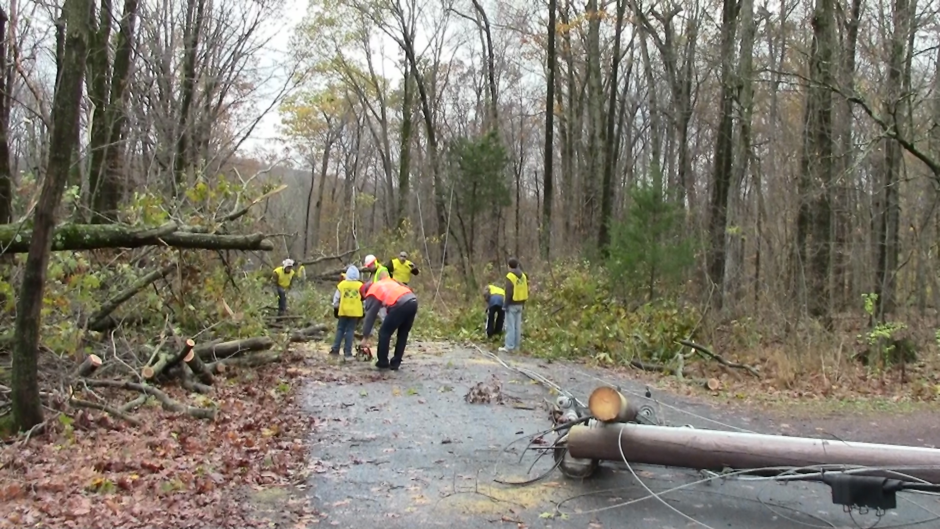 In Pennsylvania, Nockamixon Township was hit especially hard by the storm, with debris and power outages throughout the town. Bucks County Emergency Management Coordinator Harry Crohe requested Church assistance for the township, and within 12 hours, over 60 Church missionaries and members from Philadelphia and Reading arrived, chain saws in hand to help clear fallen trees.