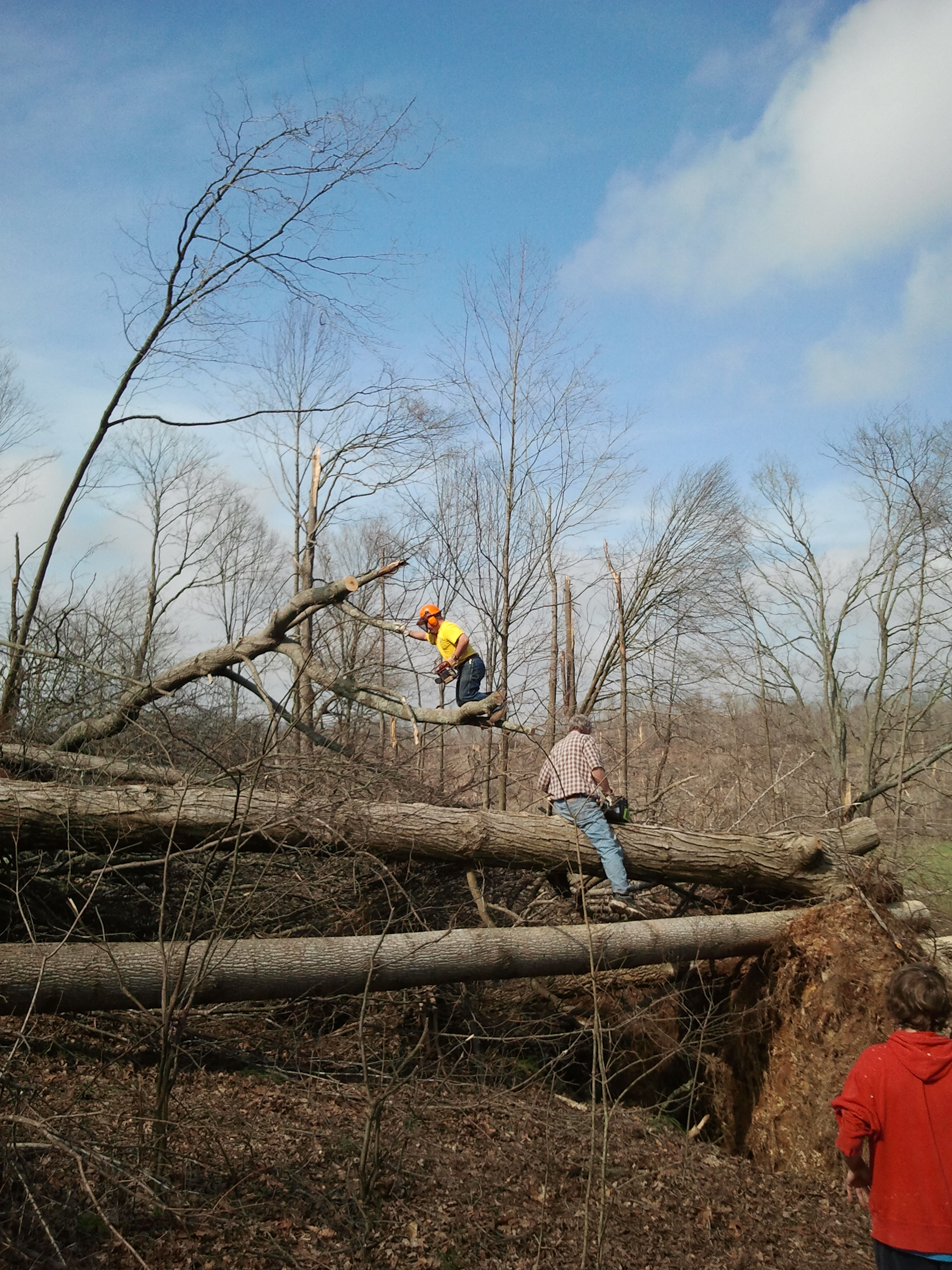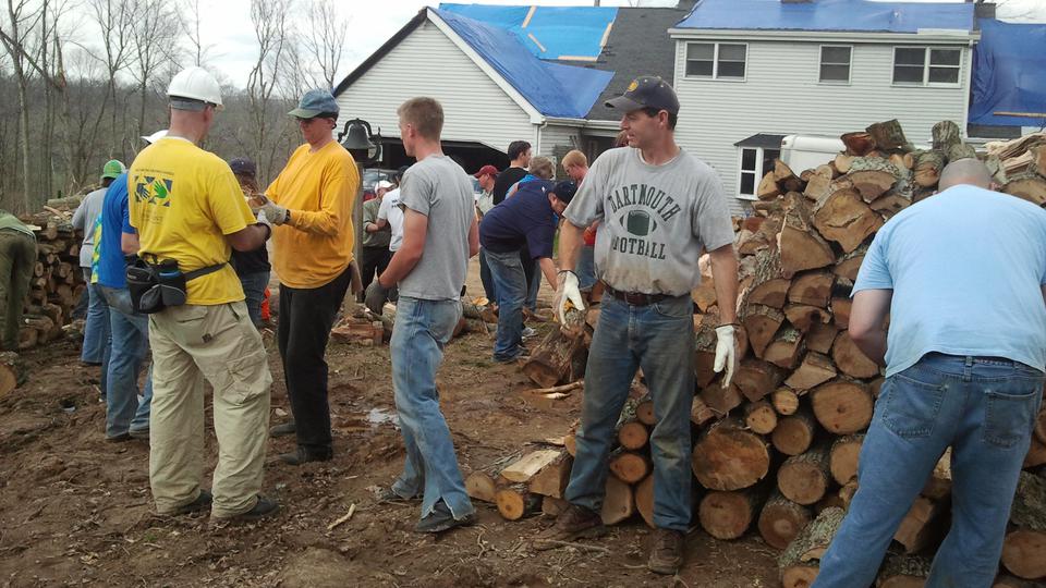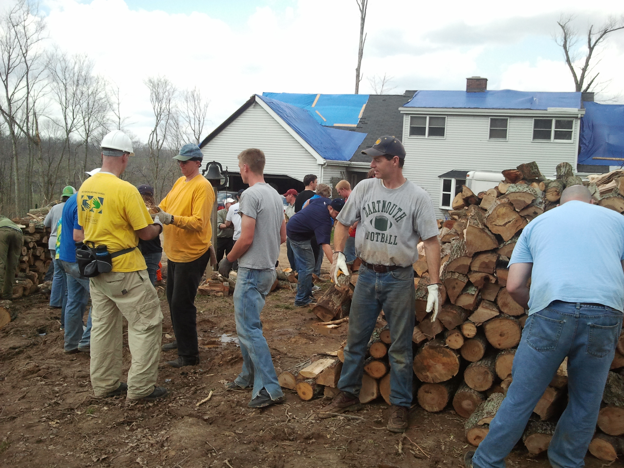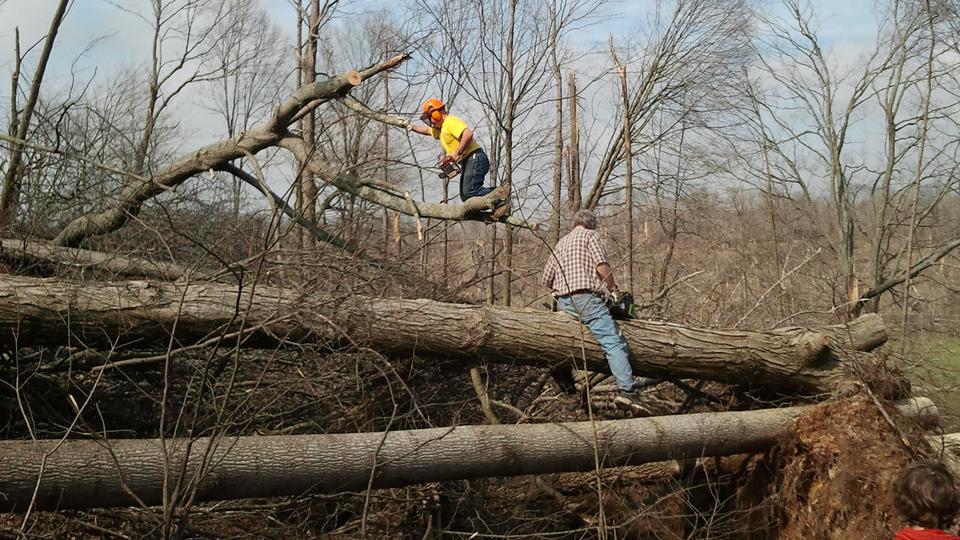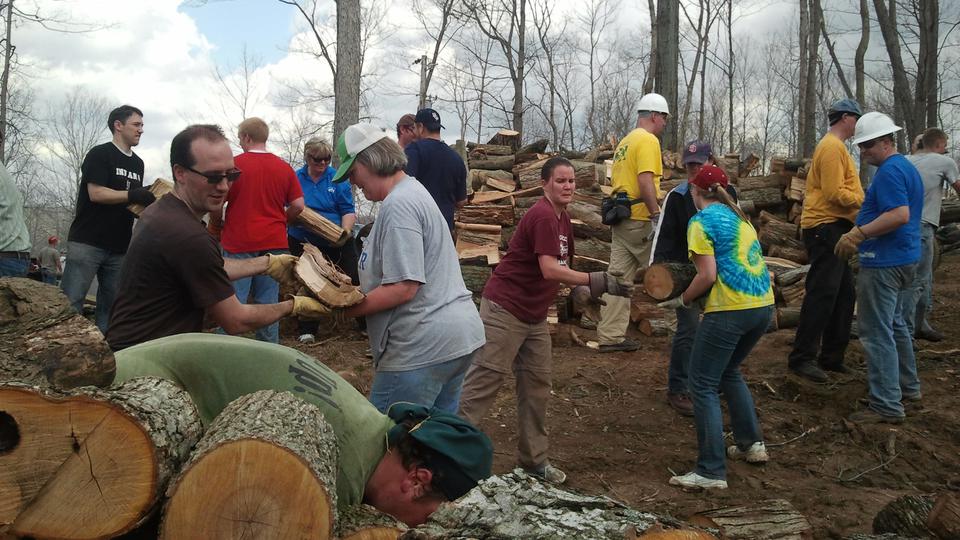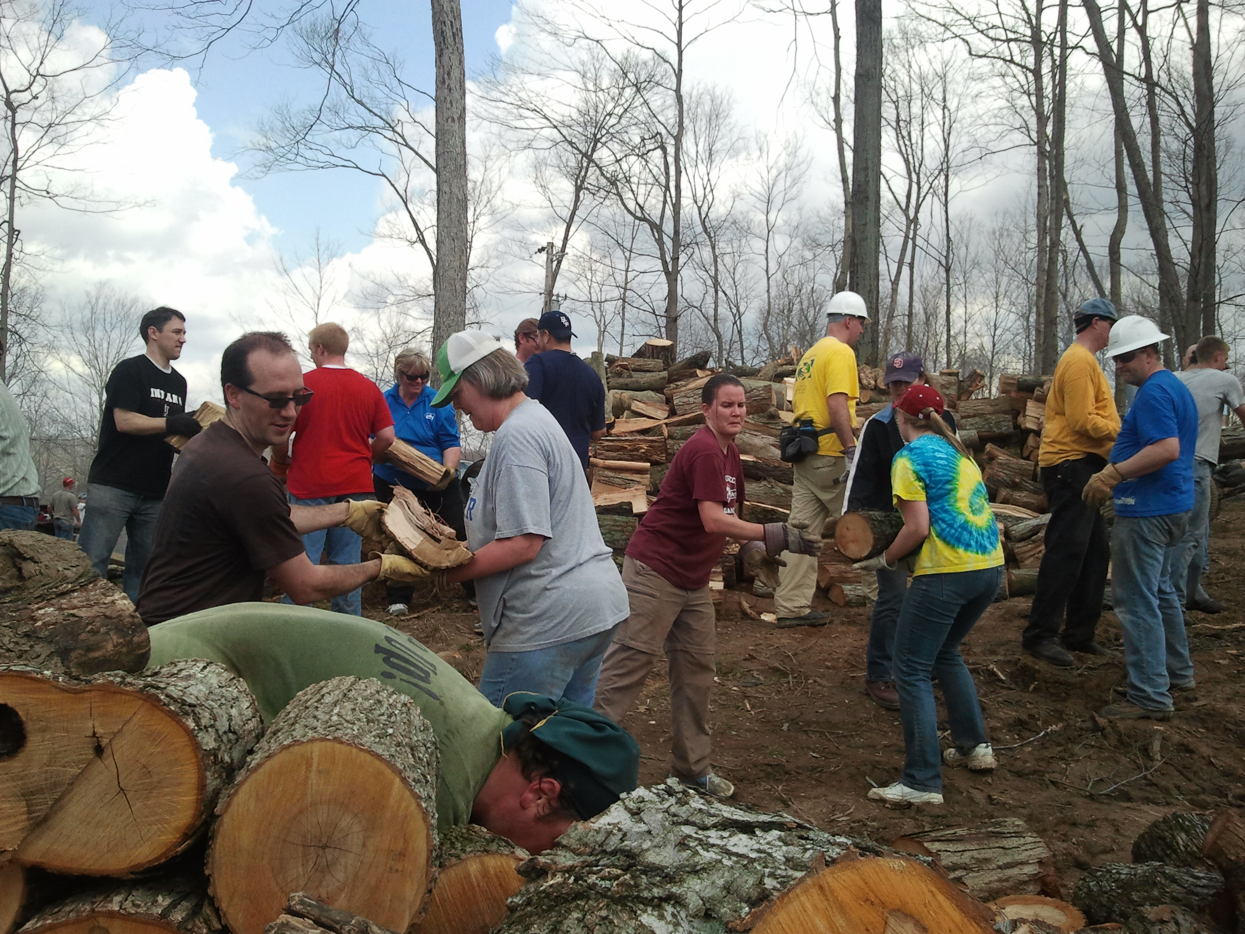 More than 300 Mormon Helping Hands volunteers from the Church’s Bloomington Indiana Stake (similar to a diocese) cleaned up fallen trees and debris from the 2 March tornado. Volunteers also traveled to New Albany, Pekin, Borden and Henryville, Indiana to render service to those areas that suffered severe destruction and loss.