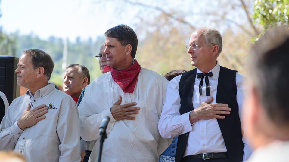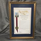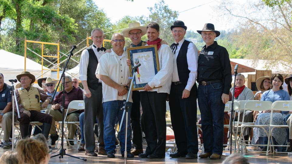 California Assemblyman Tom Lackey presented a resolution to Elder Carl B. Cook of the Seventy, who accepted the recognition on behalf of the Church. Several Area Seventies also attended the pioneer celebration, including Elder Jay D. Pimentel, Elder J. Scott Dorius and Elder Paul Watkins.