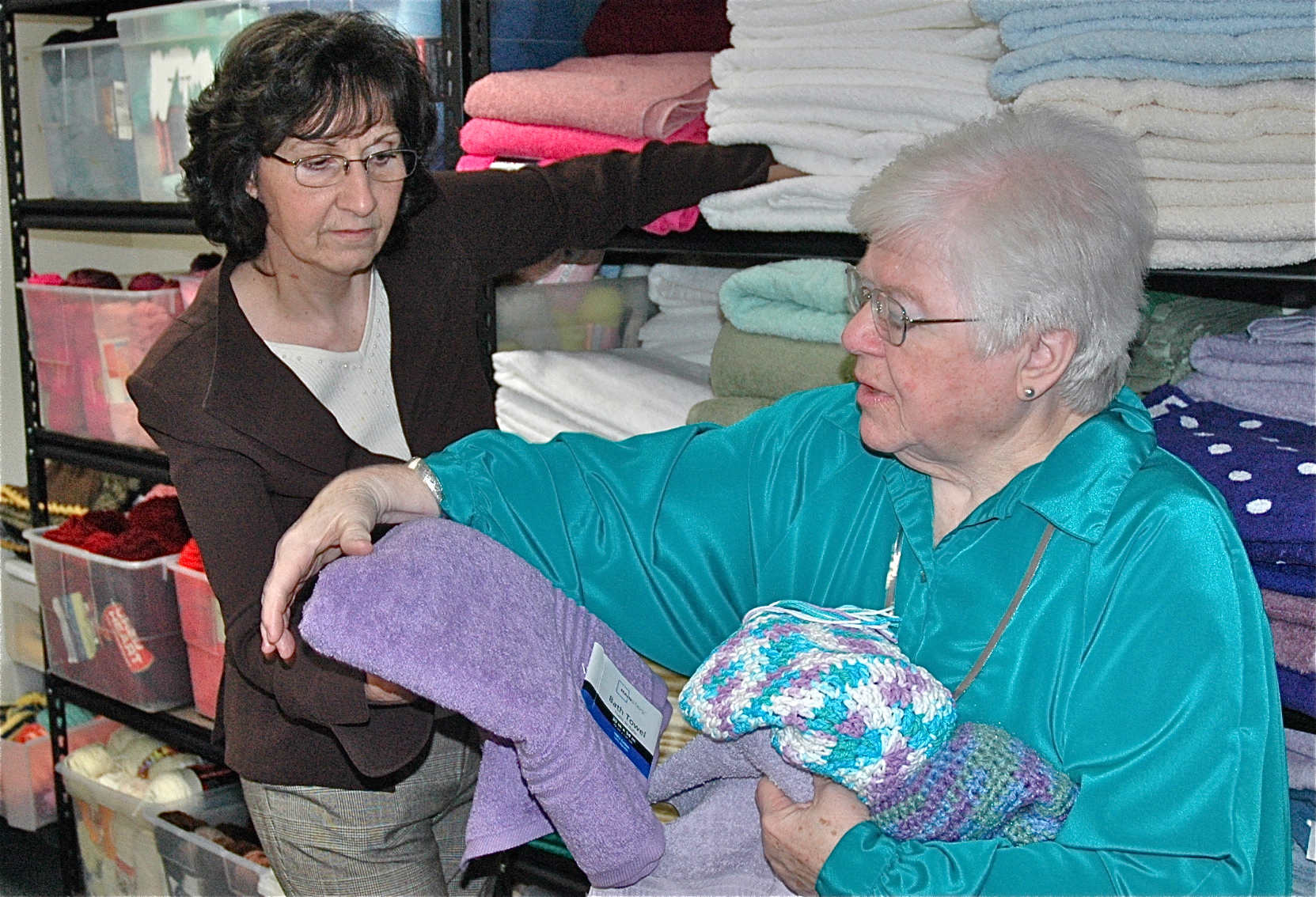 In 1997, Eva and Helen, widows living in a Salt Lake City retirement home, organized a crocheting activity in their neighborhood. They made 50 matching hats and scarves for the residents of the local homeless shelter. The effort continued and has now expanded to a project-adopted program called “Hearts Knit Together.” Welcome kits are currently donated to statewide agencies that provide respite for battered women and children. Nearly 2,000 kits were donated in 2011; almost 700 have already been donated in 2012. After 15 years, each kit still contains a hand-crocheted scarf and hat donated by the widows in the retirement home.
