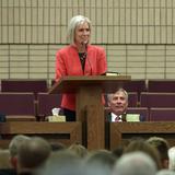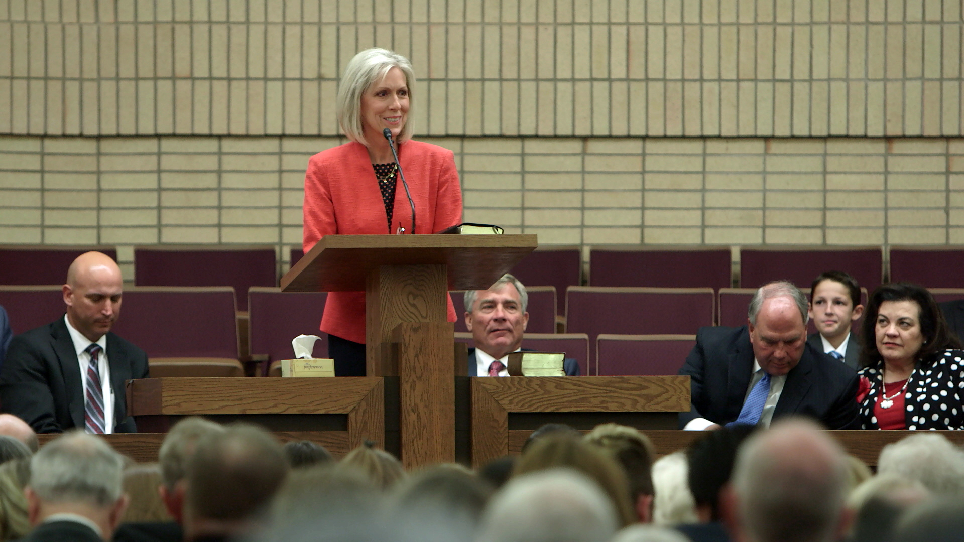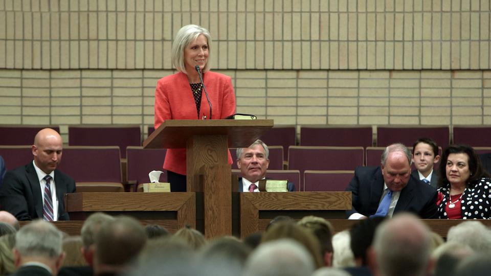 “In the eternal scheme of things, may I just say the home that many of you have lost … is not the home that you were seeking ultimately,” said Sister Jones at the Friday night meeting. “Yes, you must have a temporal shelter, again, a place you call home for you and your family,” But, she said, our eternal homes can be found in heaven.