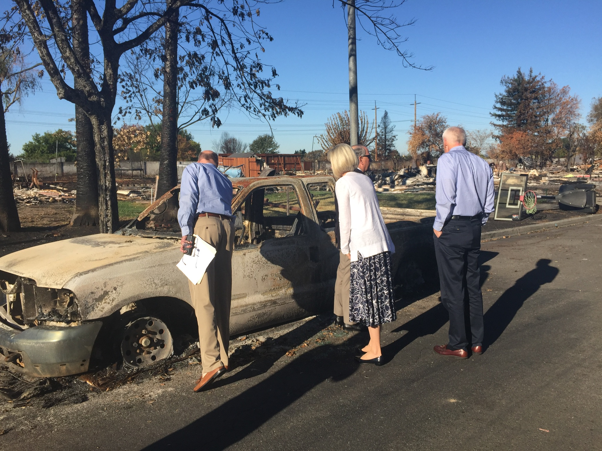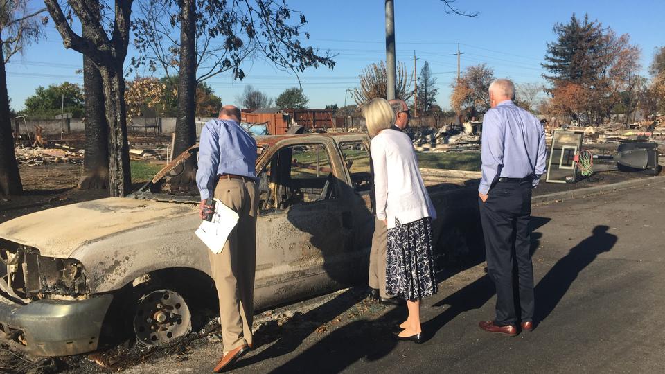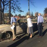The couple lost their home several weeks ago as fire swept through the Coffey Park neighborhood of Santa Rosa. Elder Rasband, Sister Jones and their spouses visited with the Darrimons and other families who lost their homes in the devastated neighborhood during a Saturday morning tour of the area.