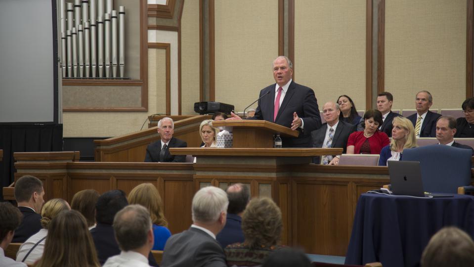 “We're only a few weeks beyond this disaster, and from my experience, whether ministering to those who have lost loved ones or lost property, the days get harder the farther we get away from the event,” said Elder Rasband, who was accompanied by his wife, Melanie, during a special meeting at the Santa Rosa Stake Center Friday night, October 27, 2017.