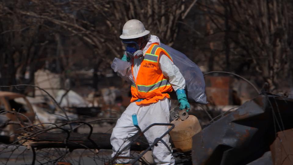 The EPA teams methodically inspect and remove possible toxic items from each property before declaring it safe. Owners such as the Darrimons can then begin searching the ashes for recoverable family heirlooms.