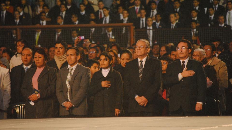 On Saturday night, approximately 14,000 local Mormons celebrated the Church growth milestone at an event at the University of San Marcos stadium, which featured cultural dances, a parade of 300 former and current Mormon missionaries and a video about the Church’s 50-year history in Peru. The Saturday evening event was the largest-ever gathering of Peruvian Latter-day Saints.