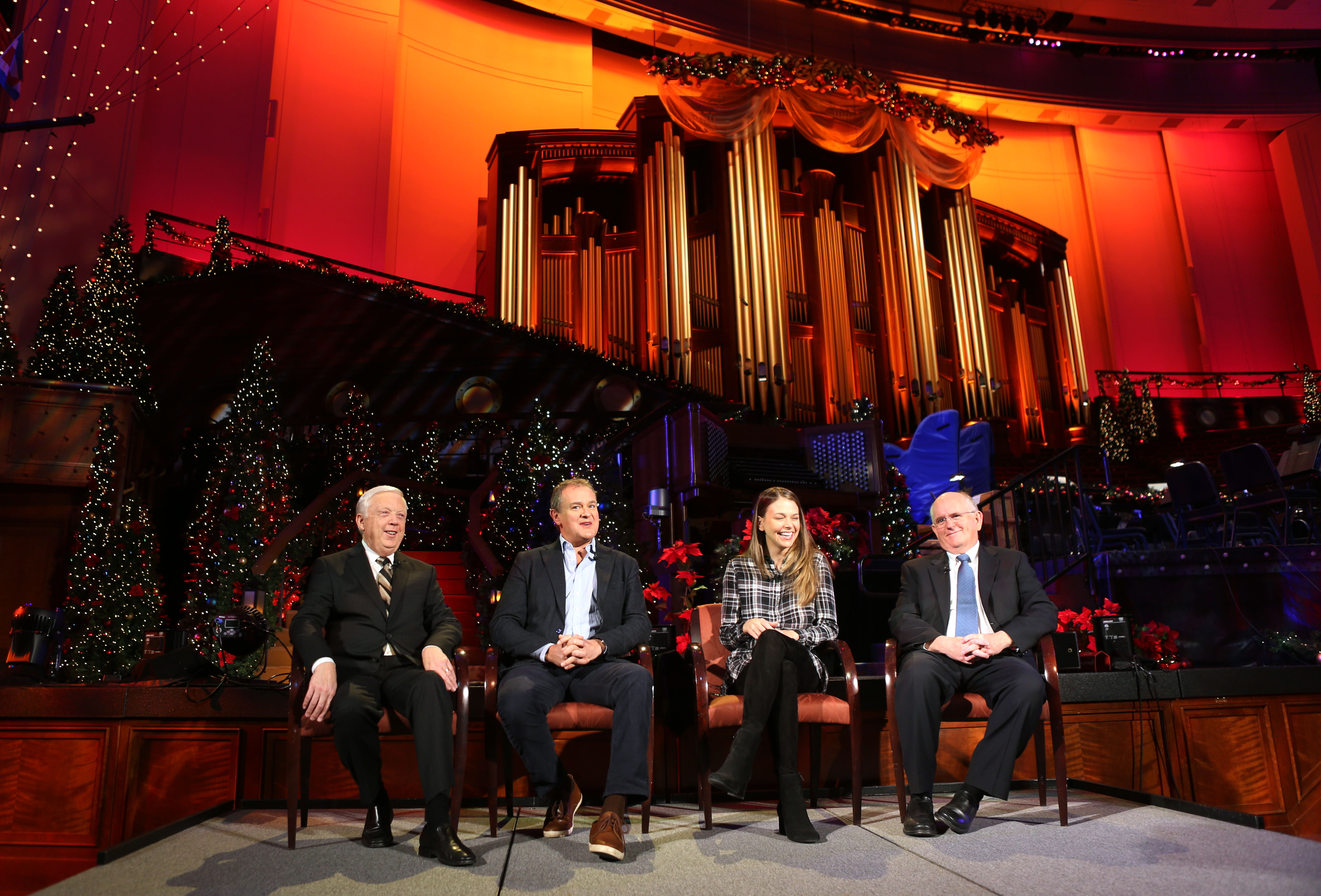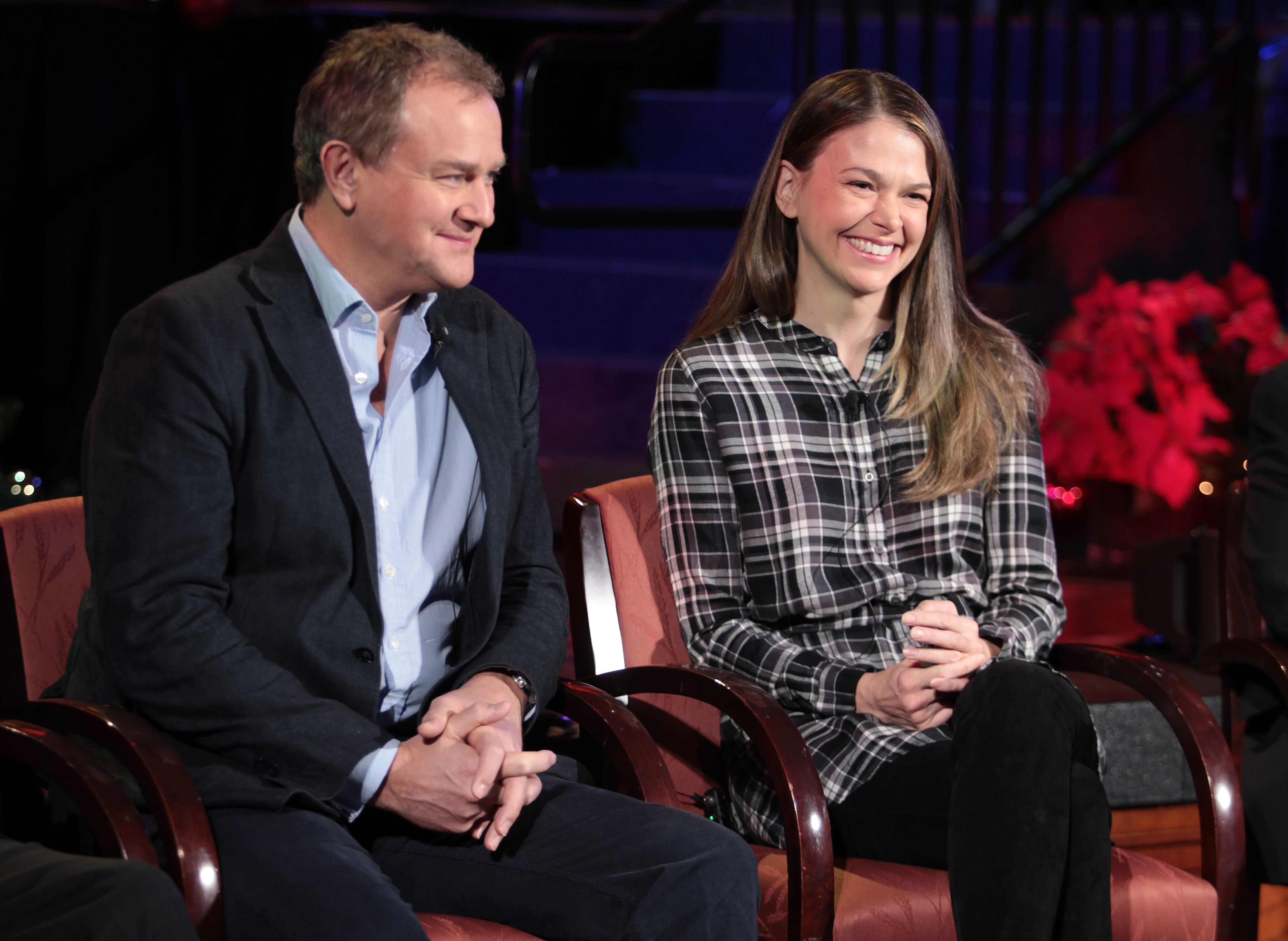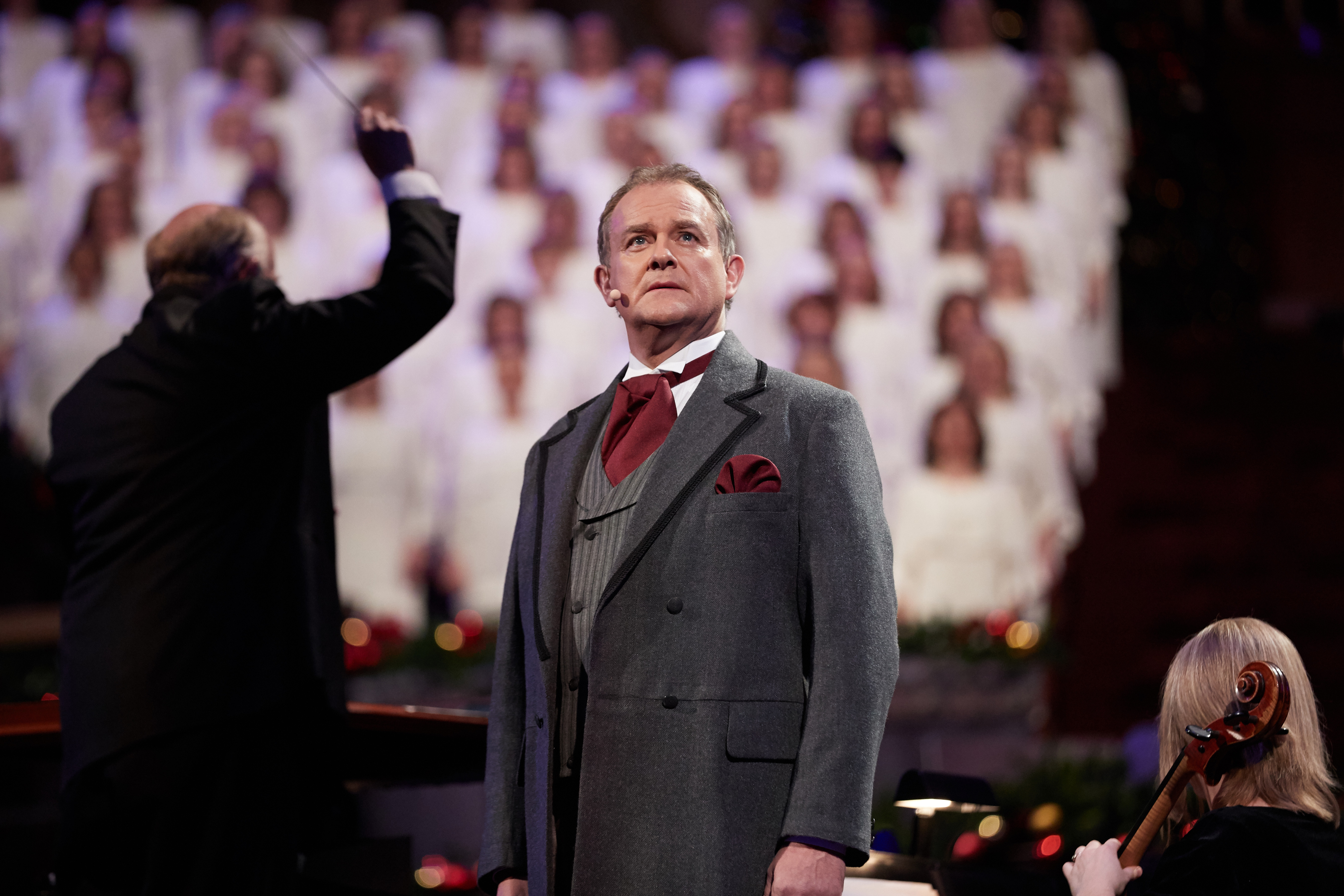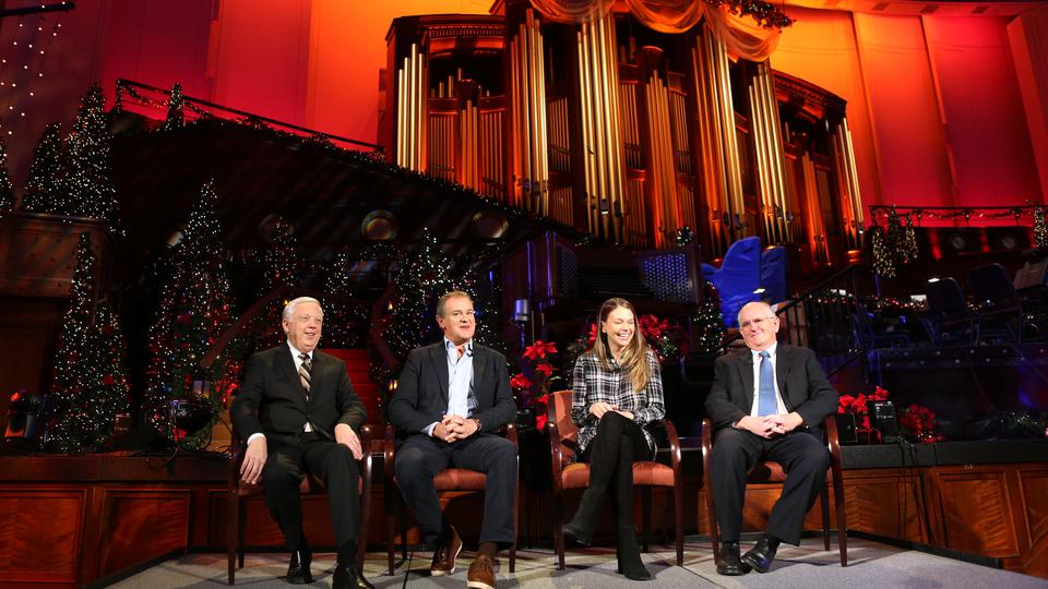 Broadway artist Sutton Foster and British actor Hugh Bonneville joined the Mormon Tabernacle Choir in Salt Lake City Thursday night, December 14, 2017, for the first of three performances to celebrate the Christmas season. The 18th annual Christmas concert from the Conference Center also features the Orchestra at Temple Square and Bells on Temple Square.