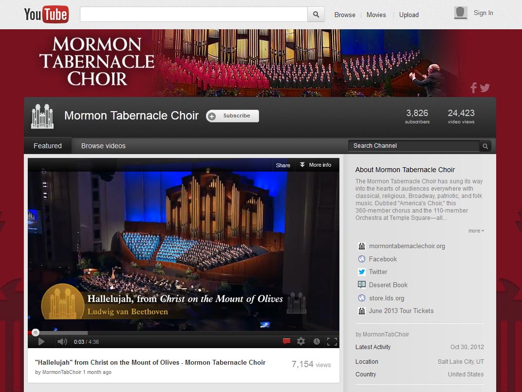 - Salt Lake Tribune: Mormon Tabernacle Choir announces YouTube channel