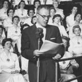 Eleven months later, 24-year-old Richard L. Evans became the first regular program narrator. He was one reason the program never missed a week, as he continued announcing for the next 41 years (1930–1971). Evans soon began to associate song titles with inspirational thoughts. He spoke from his life experience and crafted two- to three-minute “sermonettes” on uplifting topics including gratitude, happiness, duty and love.