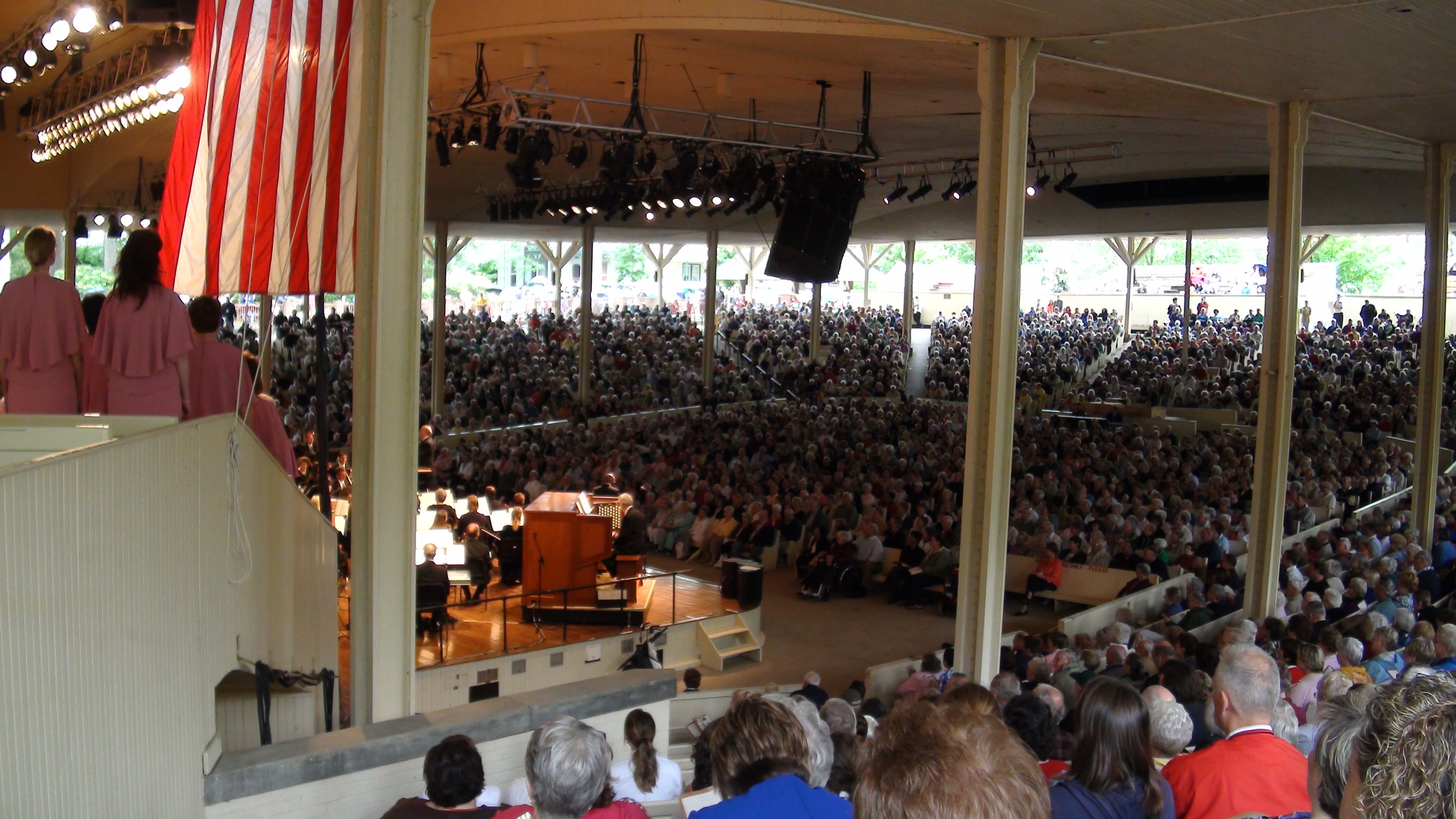 In addition to the 10,000 people who packed the auditorium, many people sat on the porches and balconies of nearby houses to enjoy the open-air concert. This marks the third time in eight years the choir has sung at the Chautauqua Institution, a nonprofit community that hosts performances, lectures and activities throughout the summer. The institution’s vice president and director of programming, Marty Merkley, said the Chautauqua crowds love the Mormon Tabernacle Choir.