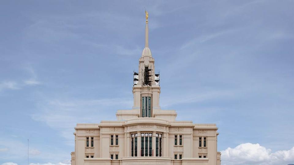 The under-construction Ogden Utah Temple. The renovation of this temple began 2 April 2011, and the temple is approximately 94 percent complete.