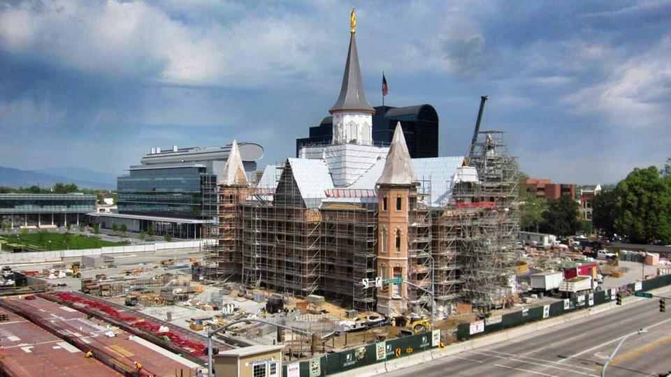 The under-construction Provo City Center Temple. The groundbreaking ceremony for this temple was held 12 May 2012, and the temple is approximately 62 percent complete.
