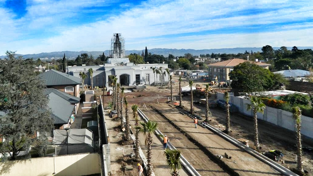 The under-construction Cordoba Argentina Temple. The groundbreaking ceremony for this temple was held 30 October 2010, and the temple is approximately 72 percent complete.