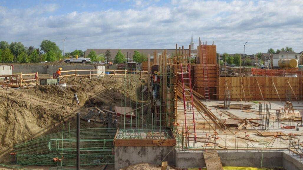 The under-construction Fort Collins Colorado Temple. The groundbreaking ceremony for this temple was held 24 August 2013, and the temple is approximately 10 percent complete.