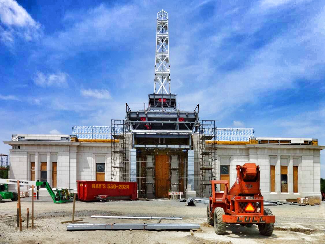The under-construction Indianapolis Indiana Temple. The groundbreaking ceremony for this temple was held 29 September 2012, and the temple is approximately 53 percent complete.
