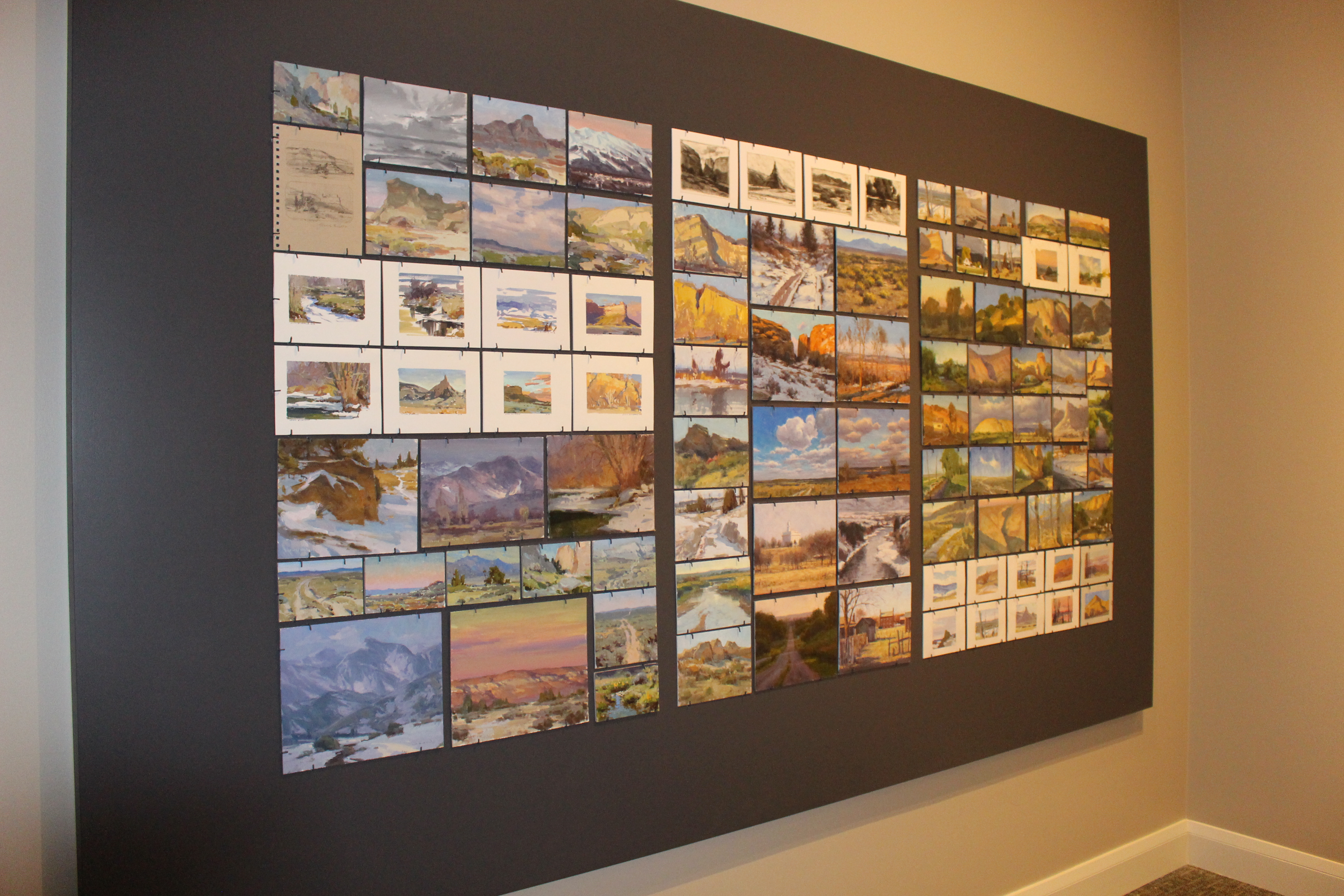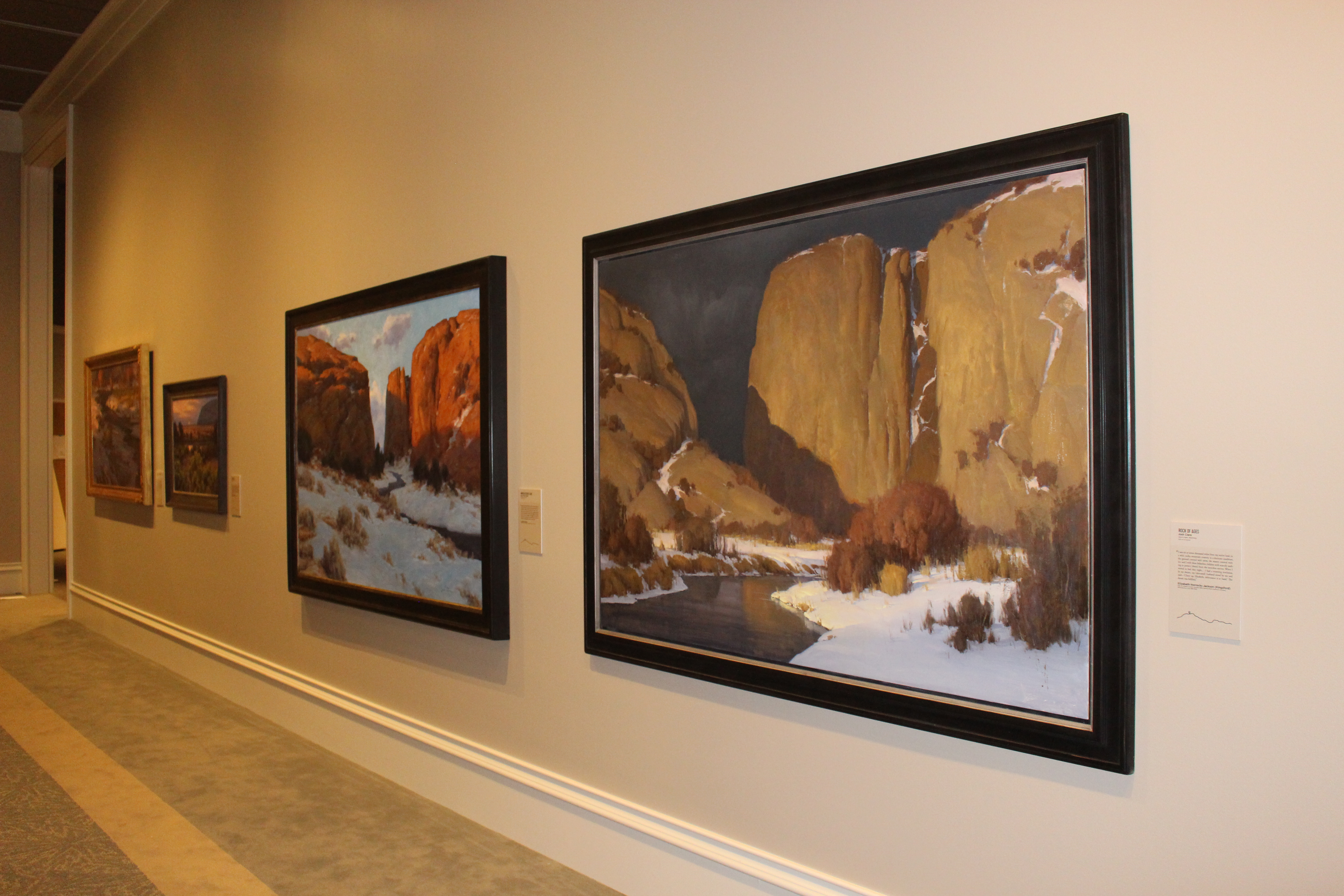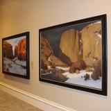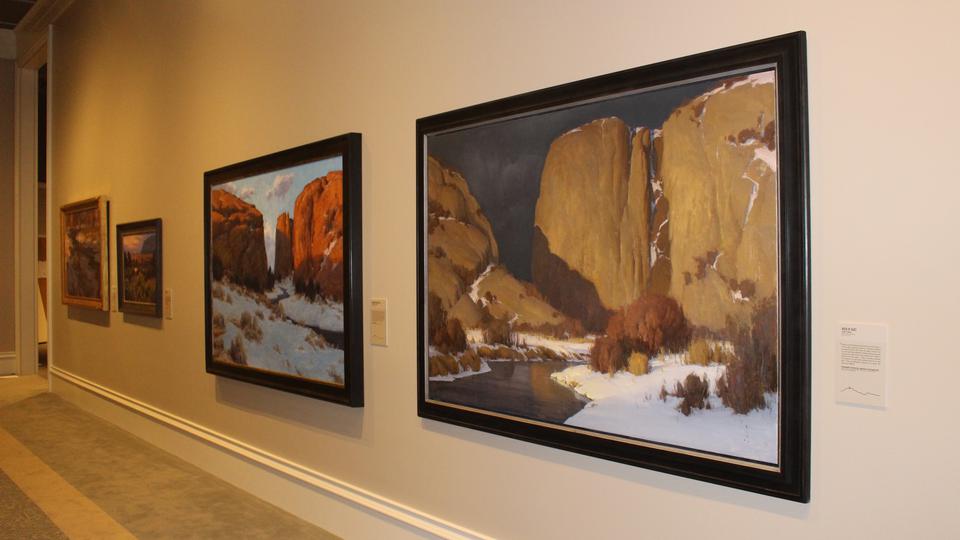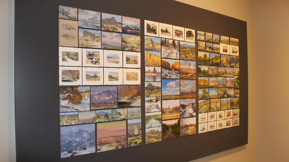 The paintings depict the land along the Mormon Trail as the pioneers would have seen it in all four seasons. The trail is the 1,300-mile route from Nauvoo, Illinois, to Salt Lake City that some 70,000 Mormon pioneers traveled between 1846 and 1868 on their journey to the West.