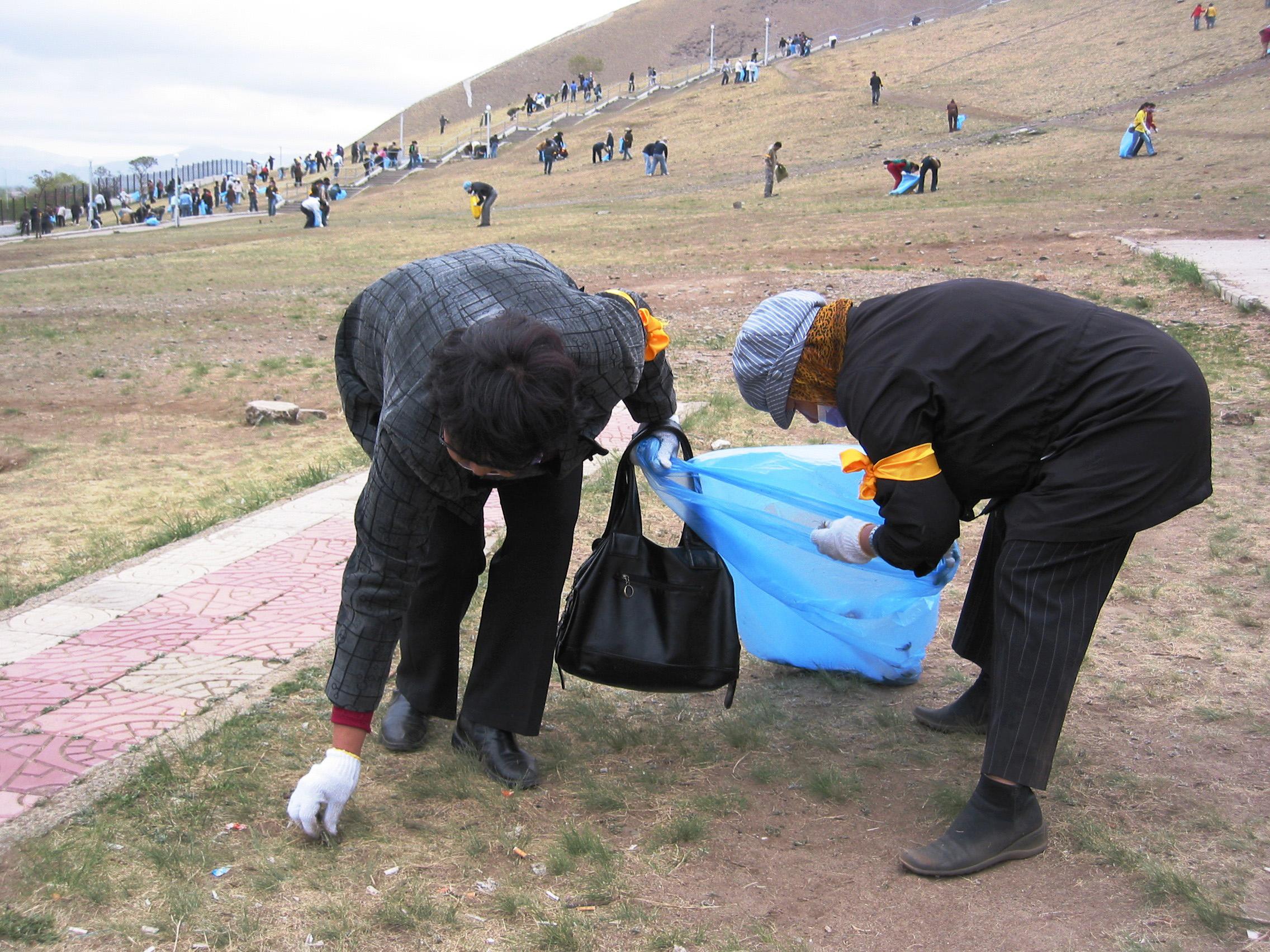 Despite challenging weather conditions, Mormon volunteers clad in protective gloves and masks gathered hundreds of bags of trash — garbage that detracted from the appearance of the distinctive cone-shaped memorial site — and filled five large city trucks with the rubbish.