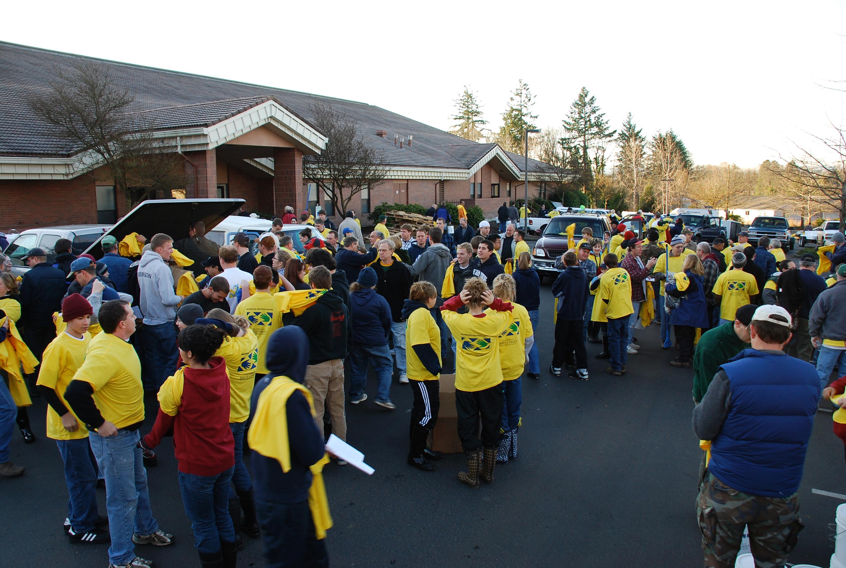 Church leaders put out a call for volunteers last Thursday to take part in the Mormon Helping Hands project — a designation used for relief efforts worldwide. Over 3,000 people — with some coming from as far as Seattle and Vancouver, Washington — spent Friday and Saturday in Centralia and Chehalis neighborhoods delivering cleaning kits and offering cleanup assistance to anyone who needed it.