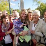 President Uchtdorf also told the story of when persistent missionaries knocked on the door of his wife, Harriet, when she was a young girl living on the top floor of a four-story apartment building in Frankfurt, Germany, with her mother and sister following the death of her father. “How often have I given thanks that they kept going — even to the fourth floor, last door.”