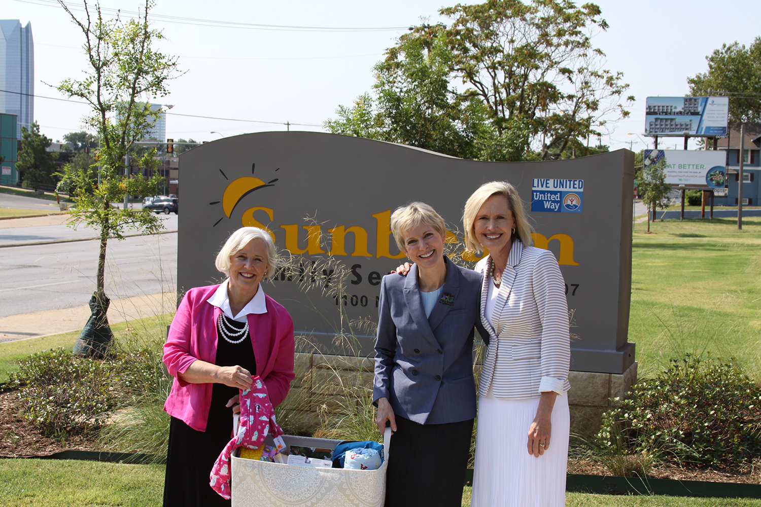 On Friday, Sister Bingham, Sister Marriott and Sister Cordon toured Sunbeam Family Services, Oklahoma City’s oldest nonprofit organization. They delivered a donation of more than $22,000 in car seats, blankets and other items needed for foster care children.