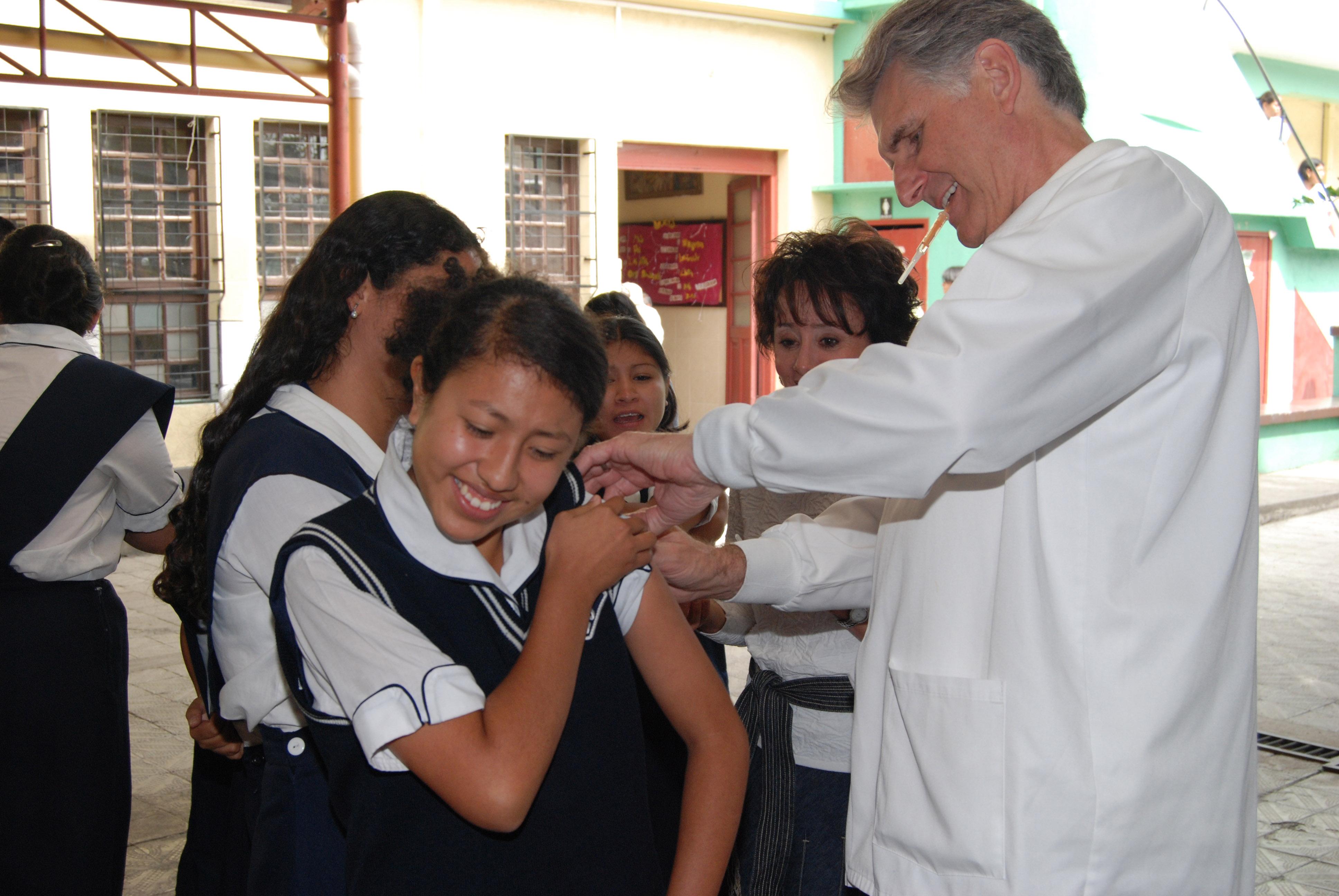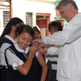 In a ceremony officially launching the anti-measles campaign, Óscar Berger, president of Guatemala, gave the first vaccination to one of the waiting children.