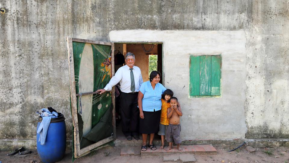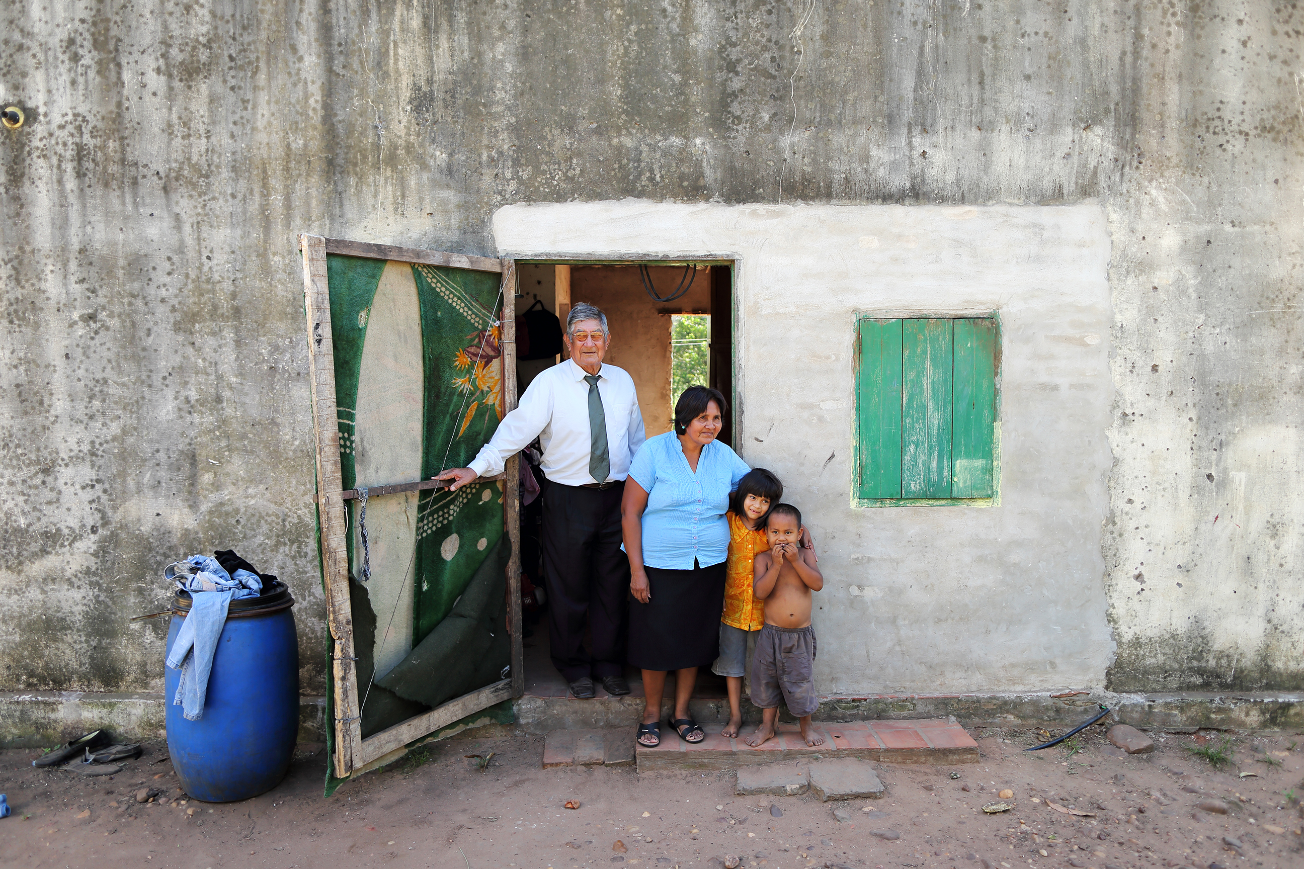 Walter Flores and his wife were the first indigenous people to be baptized into The Church of Jesus Christ of Latter-day Saints in Paraguay August 24, 1982. They became ambassadors of the Church to other indigenous colonies. They are pictured at their home in Comunidad Tovacón, Paraguay.