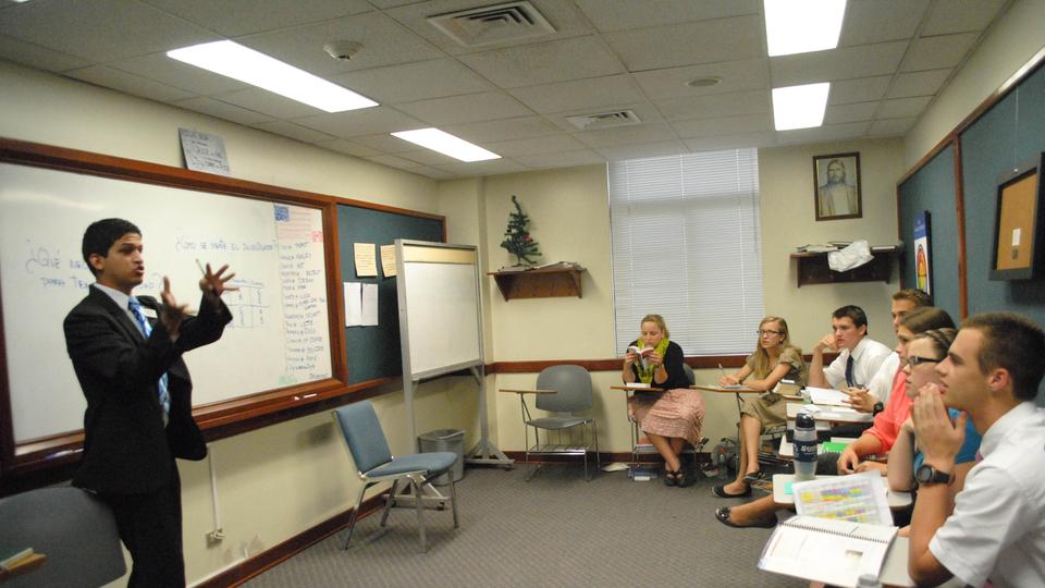 Missionaries stay from two to six weeks, depending on their language skills. They spend their MTC study time in group religion and language courses.