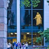 Bertel Thorvaldsen's 11-foot statue of the Christus was reproduced by Italian sculptor Aldo Rebechi for the Church. The original is in Copenhagen, Denmark. The Christus is located on the second floor in the North Visitors’ Center. Guided tours and interactive displays about the Church are located throughout the building. Jesus Christ is the center of Latter-day Saints’ worship.