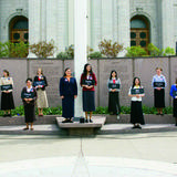 Also recognizable on Temple Square are the female missionaries who help visitors understand more about the Church. At any given time the missionaries collectively speak more than 30 different languages to accommodate visitors from all over the world.