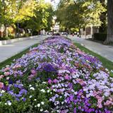 Varieties of flowers on Temple Square include petunias, hyacinths, tulips, daffodils, pansies, forsythia and forget-me-nots, just to mention a few.