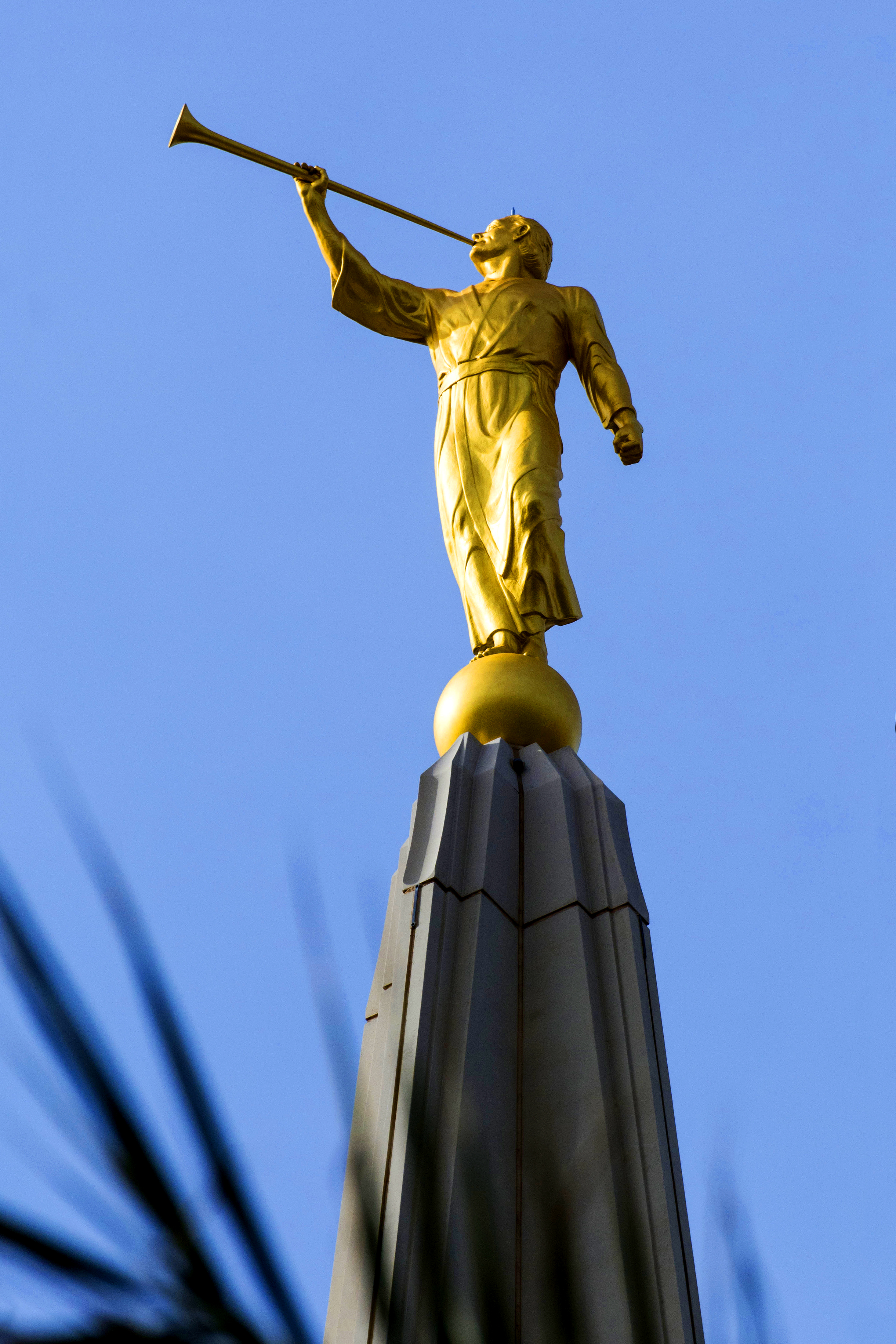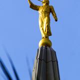 A statue of Moroni adorns the top of most temples. Moroni is not a figure of worship, but an ancient prophet in the Book of Mormon. It was the angel Moroni who guided young Joseph Smith in 1823 to the location of golden plates from which the sacred book of scripture was translated. Moroni is a key figure in the Restoration of the gospel prior to the second coming of Jesus Christ foretold in the Bible. Read more about how the angel Moroni statue is placed on a temple in this 2011 blog post, “Angel Moroni Statues Atop Mormon Temples Are More Than Decoration.”
