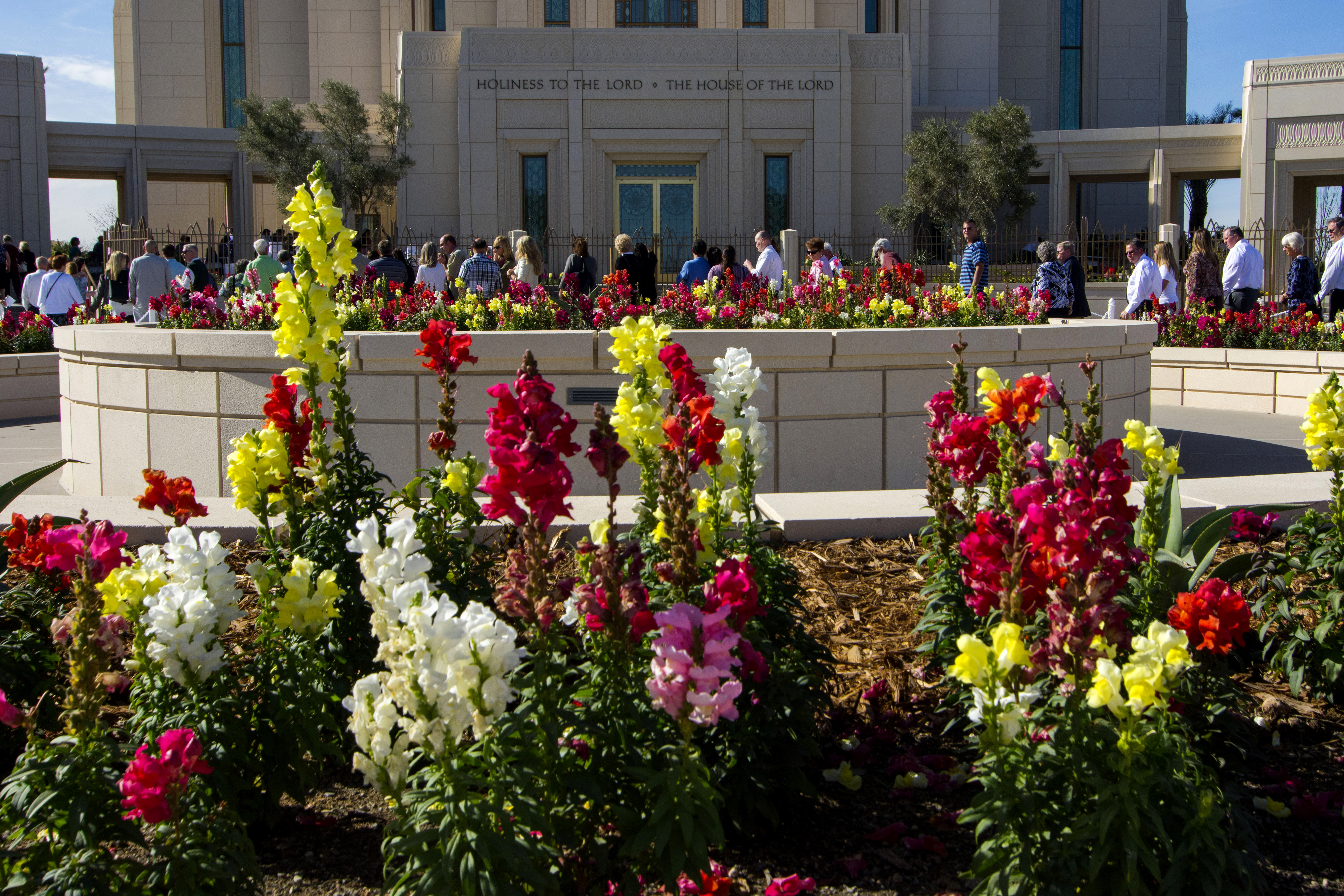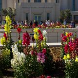 Beautiful native flowers provide a pleasant view for people waiting their turn to tour the temple. Thousands of flowers, shrubbery, palm trees and other garden accessories are planted and constructed throughout the Gilbert Arizona Temple property.